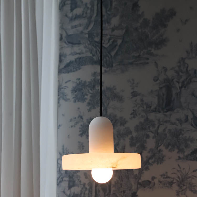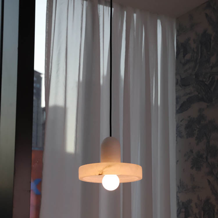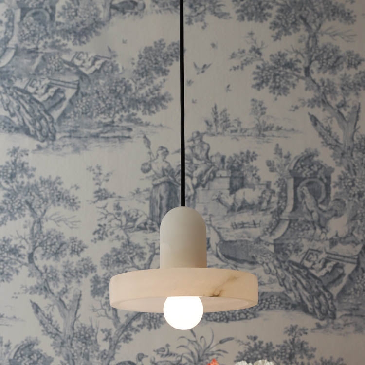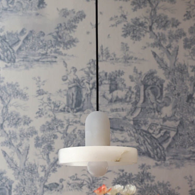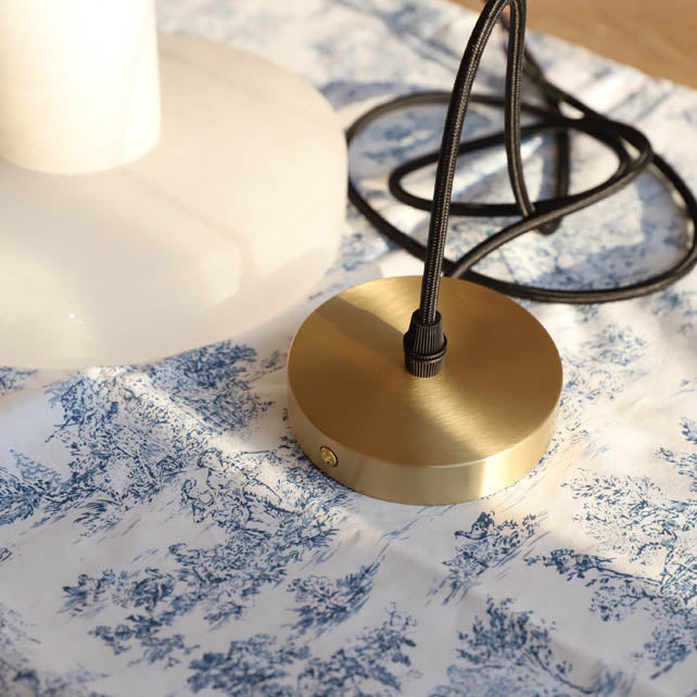 مصباح معلق صيني تقليدي من الرخام الدائري المصنوع من النحاس، مزود بمصباح واحد لغرفة المعيشة