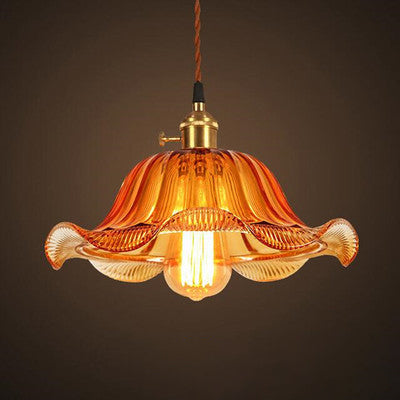 مصباح معلق صيني تقليدي على شكل بتلات زجاجية من النحاس والحديد، مصباح واحد لغرفة المعيشة