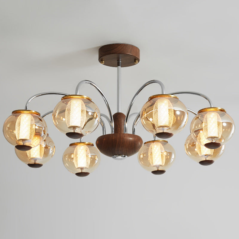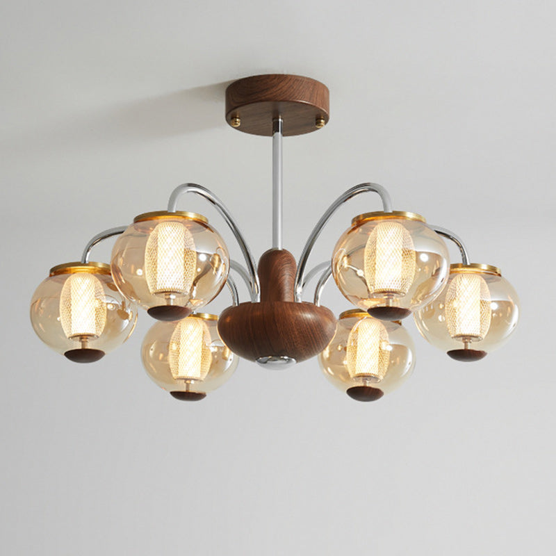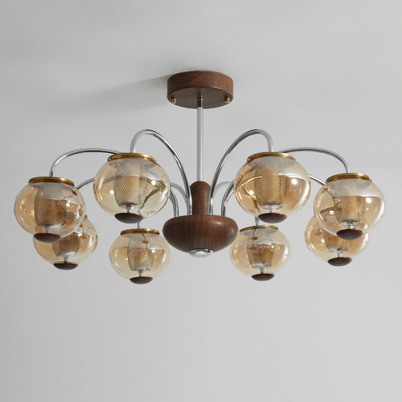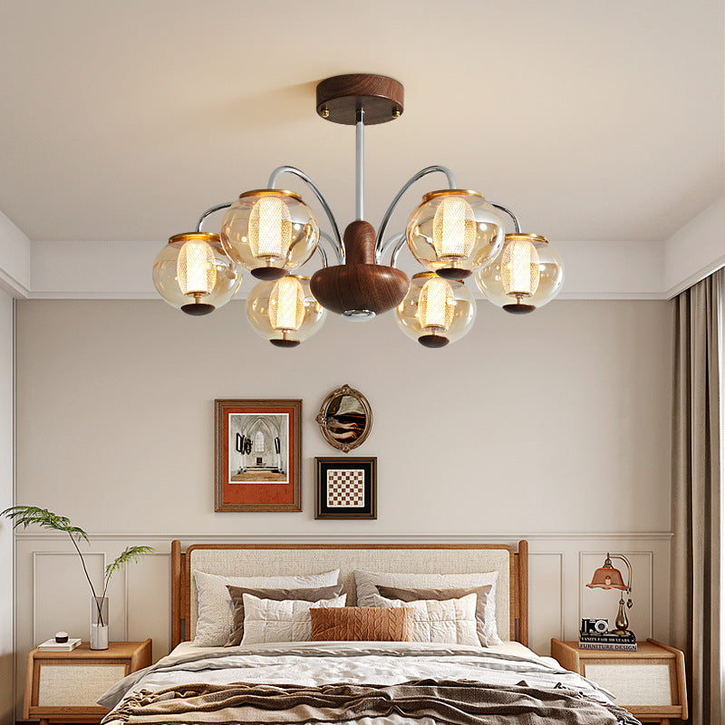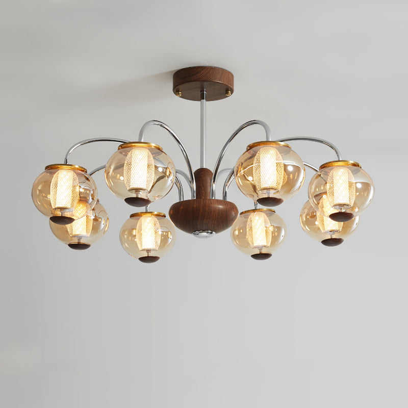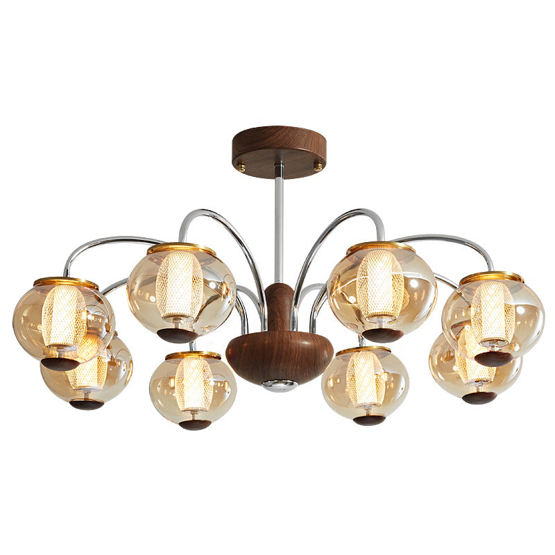 ثريا LED مصنوعة من الحديد الزجاجي على شكل أسطوانة دائرية صينية تقليدية لغرفة المعيشة