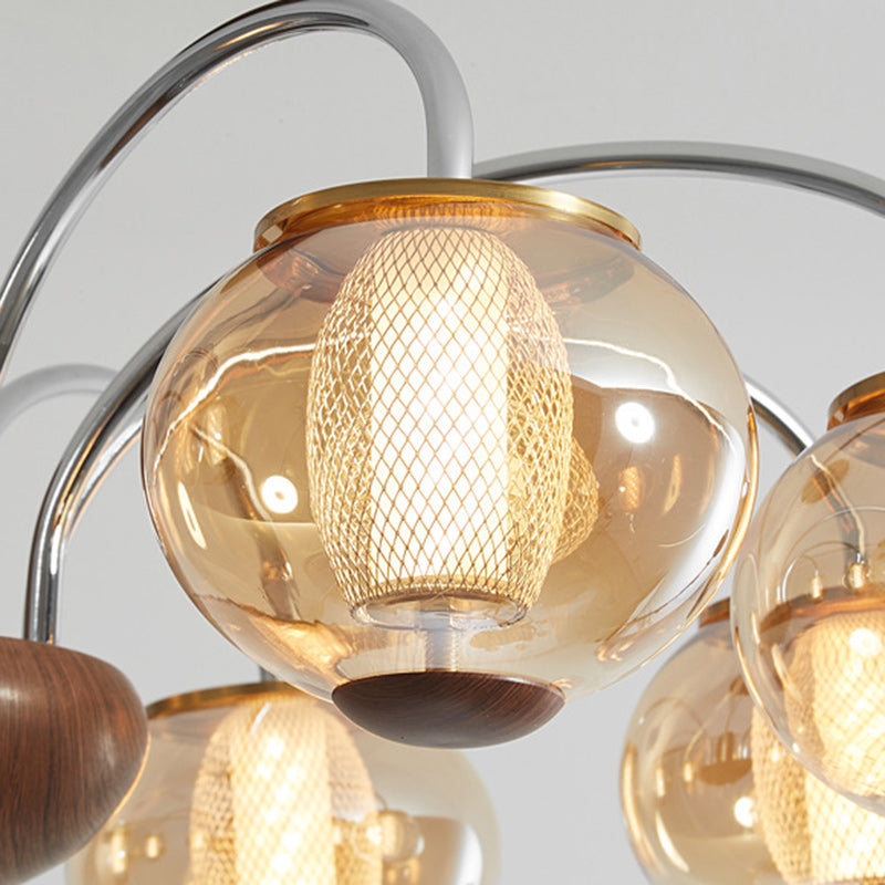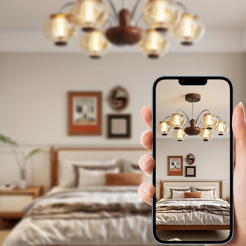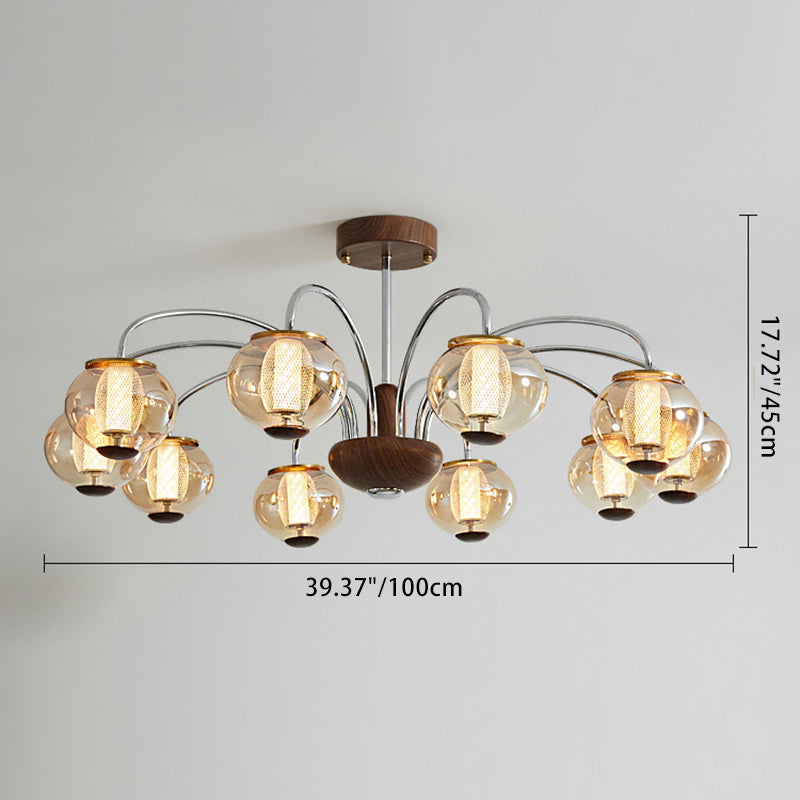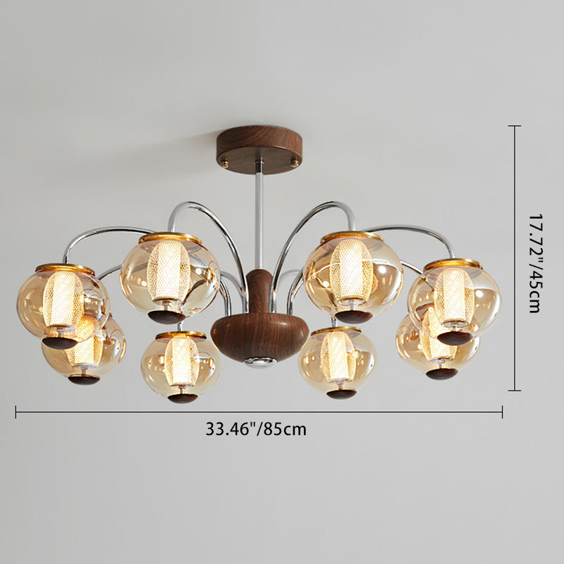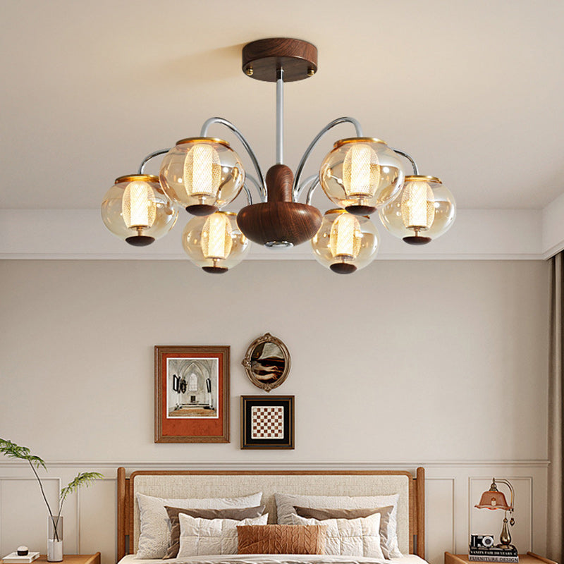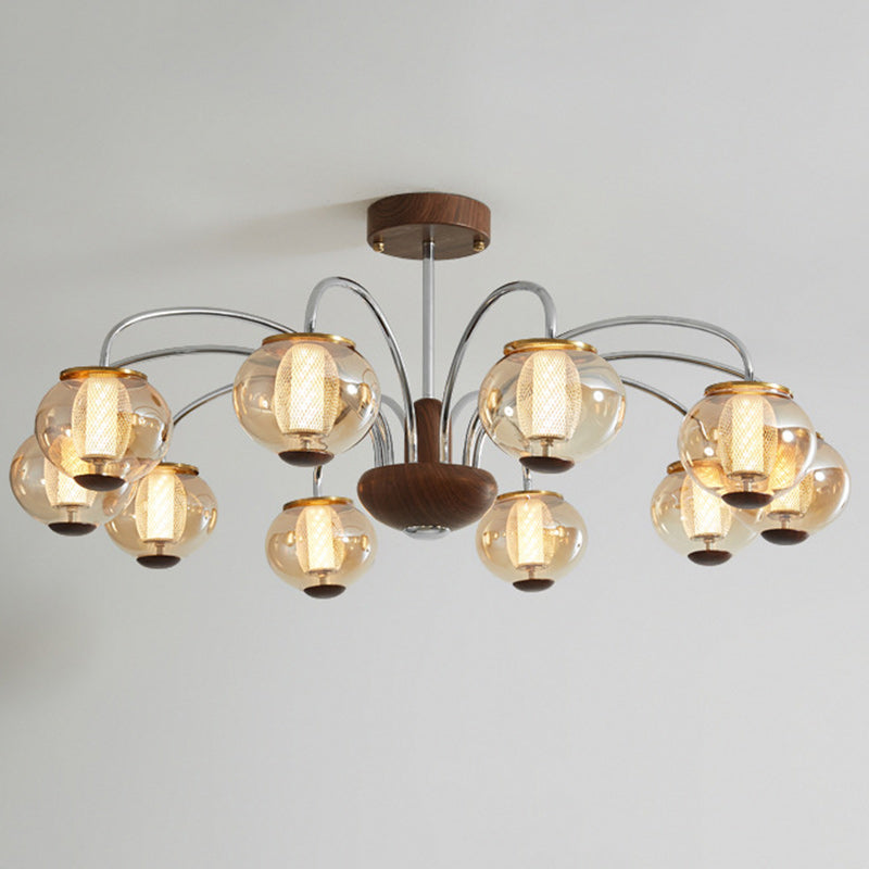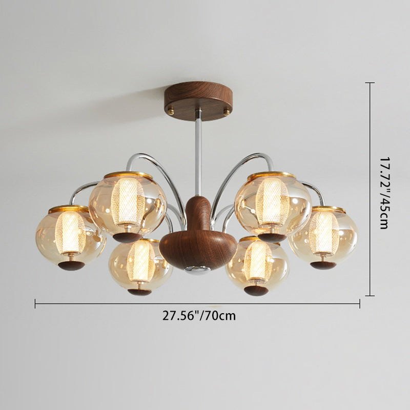 ثريا LED مصنوعة من الحديد الزجاجي على شكل أسطوانة دائرية صينية تقليدية لغرفة المعيشة