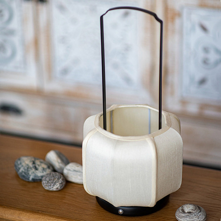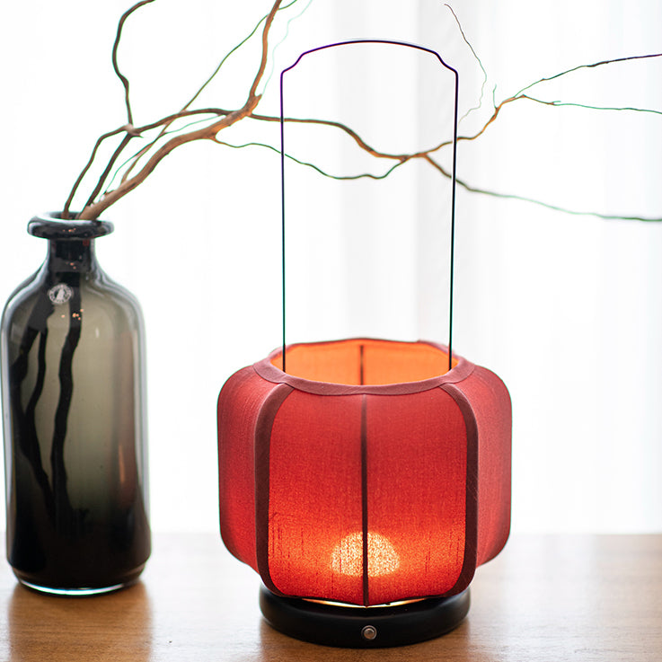 Traditional Chinese Round Lantern Shape Metal Base Silk Fabric LED Table Lamp For Bedroom