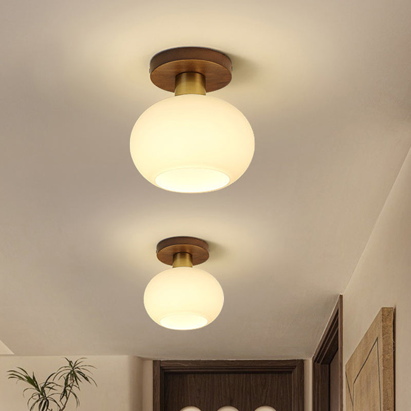 مصباح سقف صيني تقليدي دائري من خشب الجوز والنحاس، مزود بمصباح واحد، مثبت بشكل نصف مسطح، لغرفة النوم