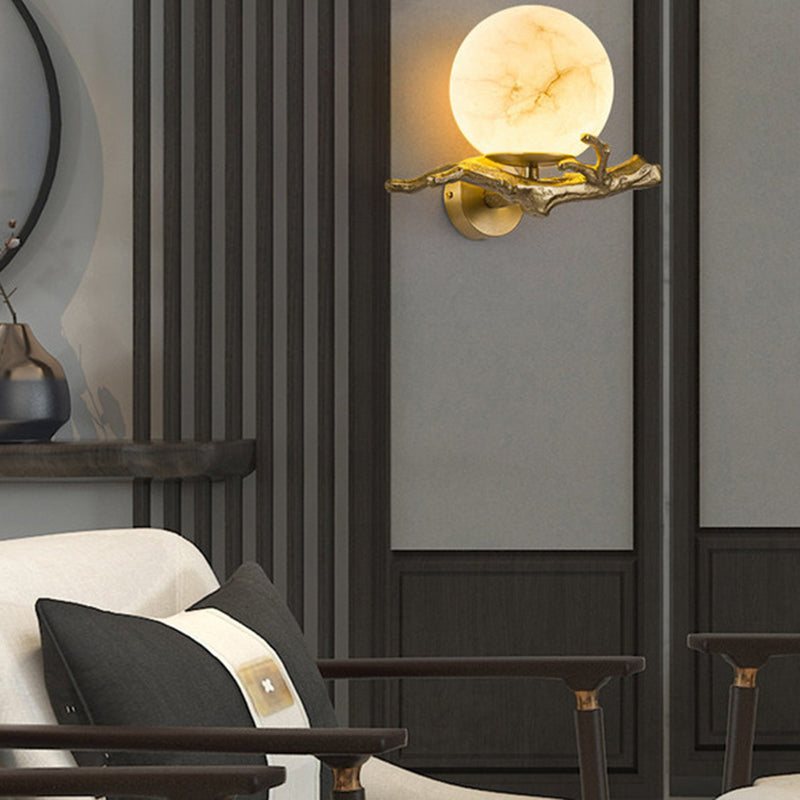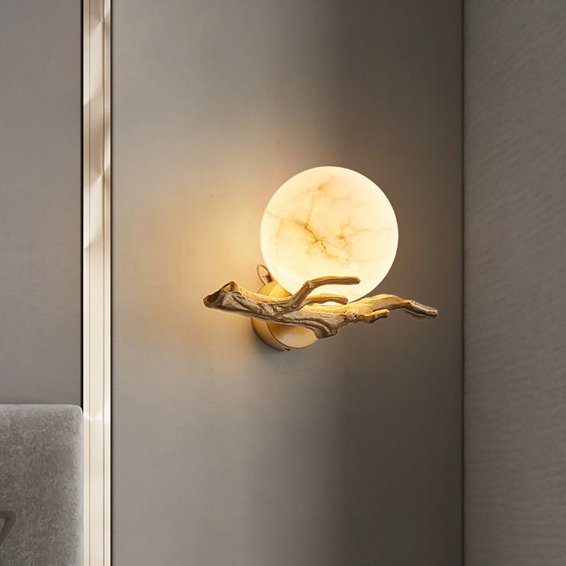 مصباح حائط صيني تقليدي مستدير من النحاس والرخام لغرفة النوم