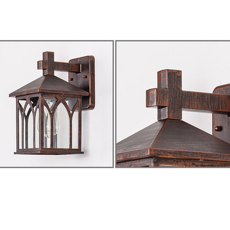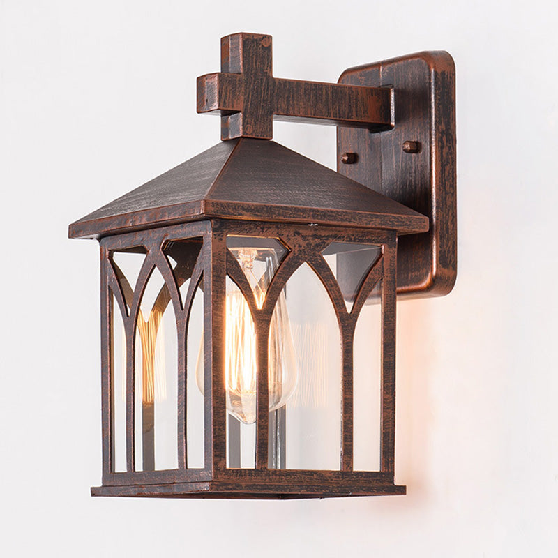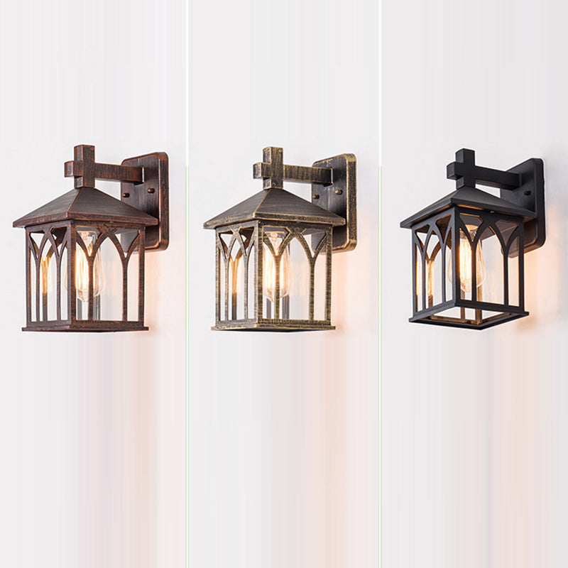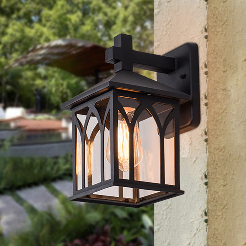 مصباح حائط مكعب تقليدي أوروبي مقاوم للماء مصنوع من الألومنيوم والزجاج ومصباح واحد للحديقة