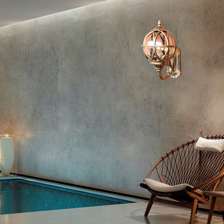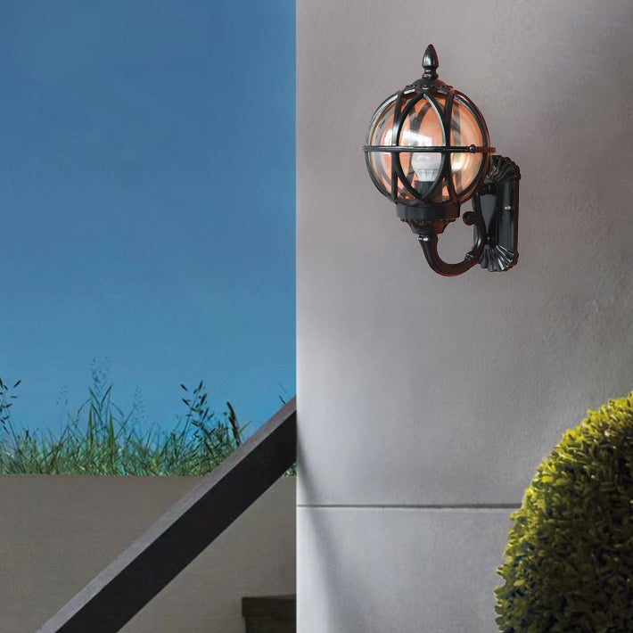مصباح حائطي تقليدي أوروبي مقاوم للماء مصنوع من الألومنيوم والزجاج مزود بمصباح واحد للفناء الخارجي
