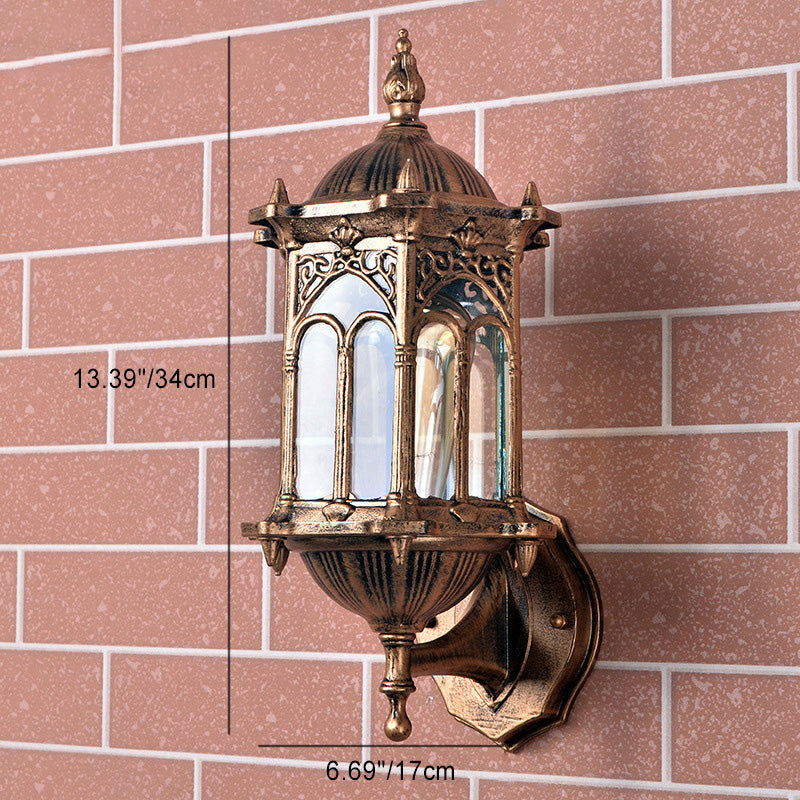 مصباح حائط أسطواني تقليدي أوروبي مقاوم للماء مصنوع من الألومنيوم والزجاج مزود بإضاءة واحدة للحديقة