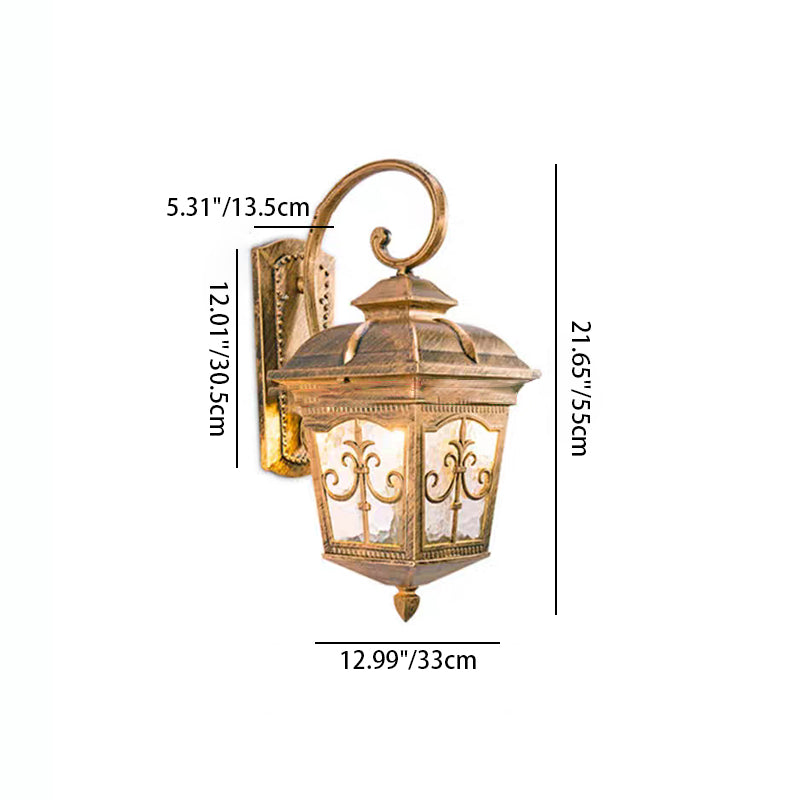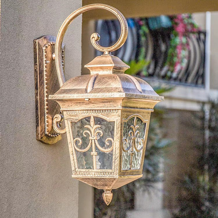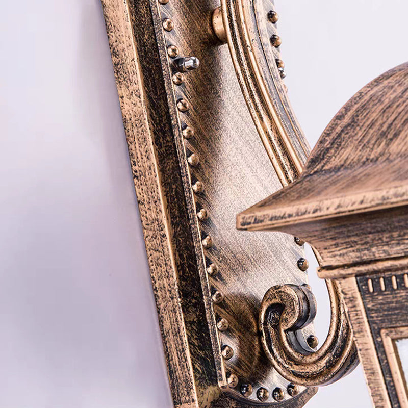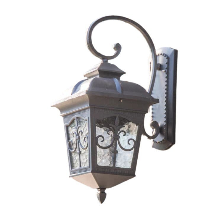 مصباح حائط تقليدي أوروبي مقاوم للماء على شكل مربع من الألومنيوم والزجاج مزود بإضاءة واحدة للفناء الخارجي
