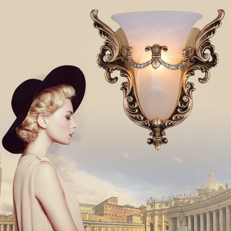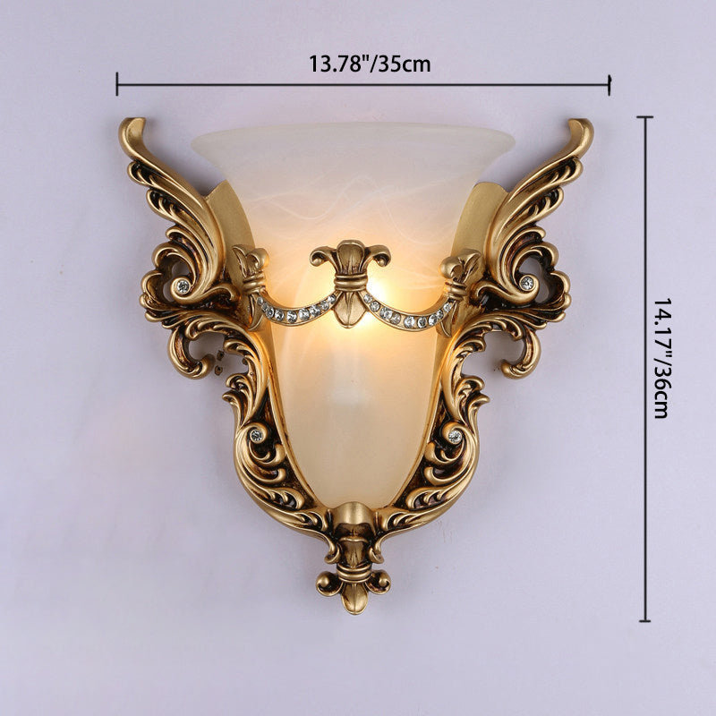 مصباح حائطي تقليدي على شكل أجنحة أوروبية من الراتنج الزجاجي بإضاءة واحدة لغرفة النوم