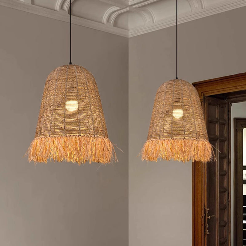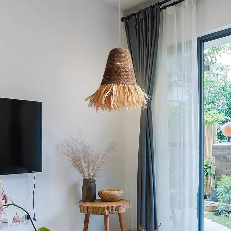 مصباح معلق بضوء واحد لغرفة الطعام، مصنوع من حبل مضفر تقليدي من عشب لافيت، مصنوع من القش