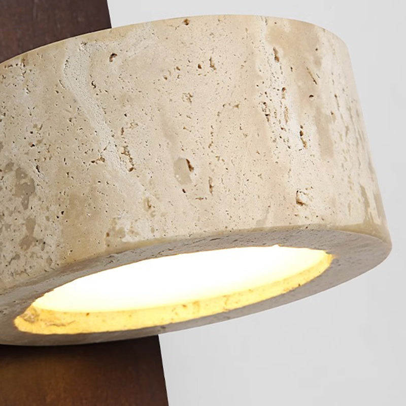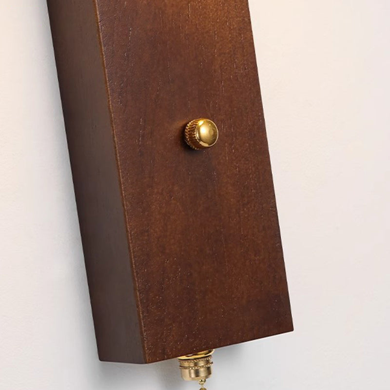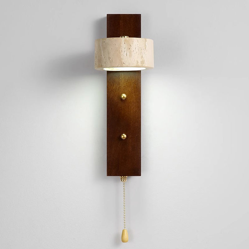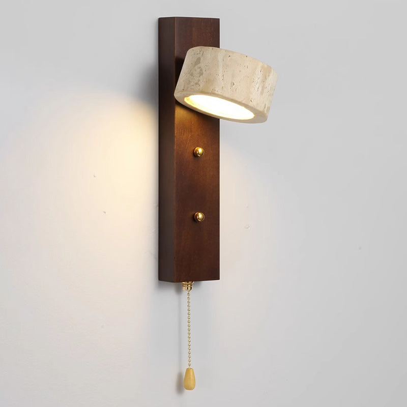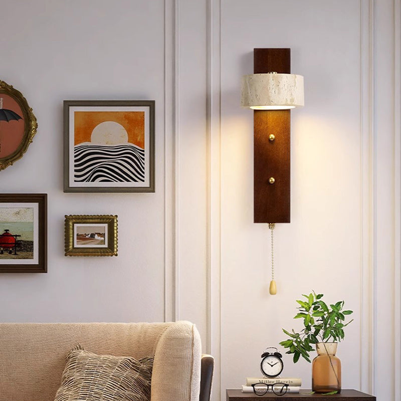 مصباح حائط LED تقليدي على شكل عمود دائري مربع من خشب الترافرتين الأصفر والجوز لغرفة النوم