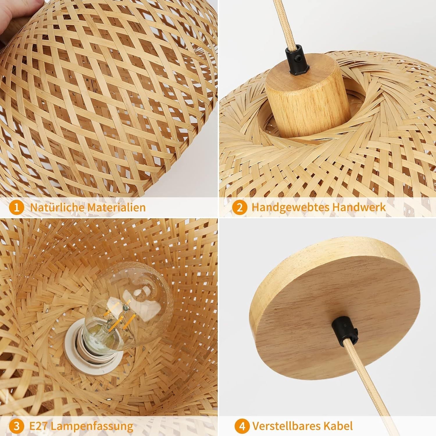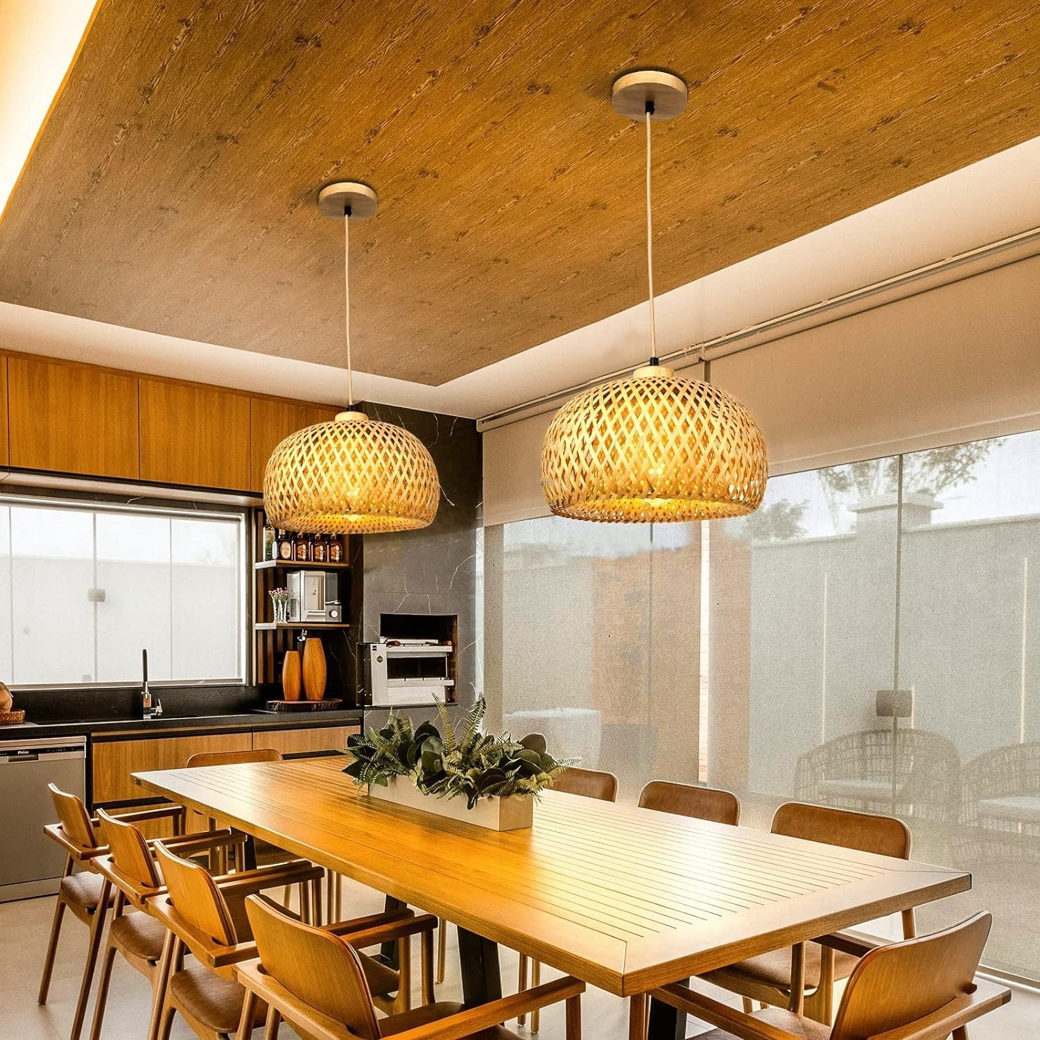 مصباح معلق نصف دائري تقليدي مصنوع يدويًا من الخيزران لغرفة المعيشة
