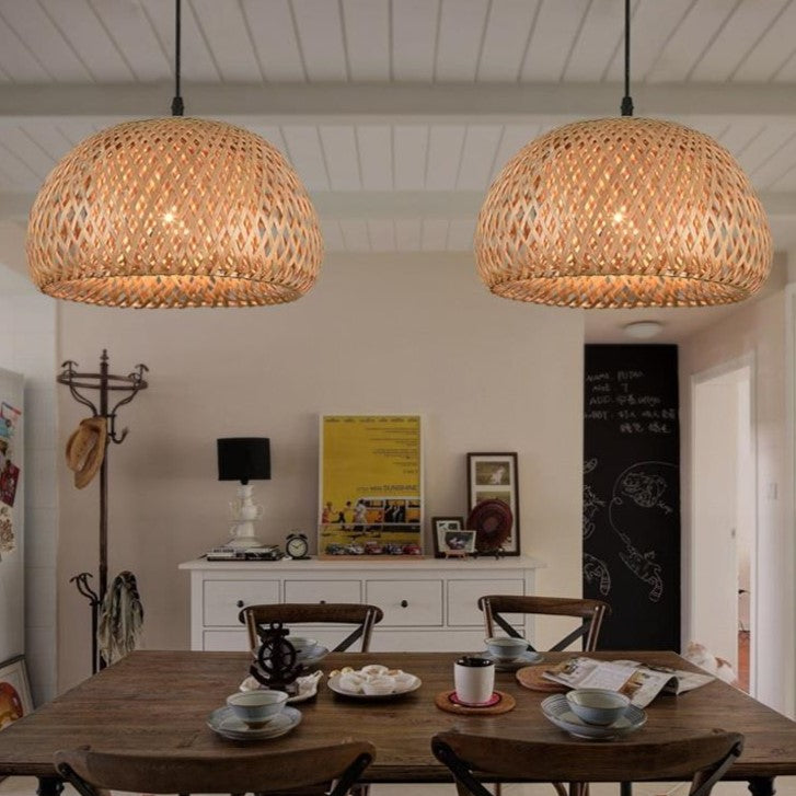 مصباح معلق نصف دائري تقليدي من الخيزران المنسوج لغرفة المعيشة