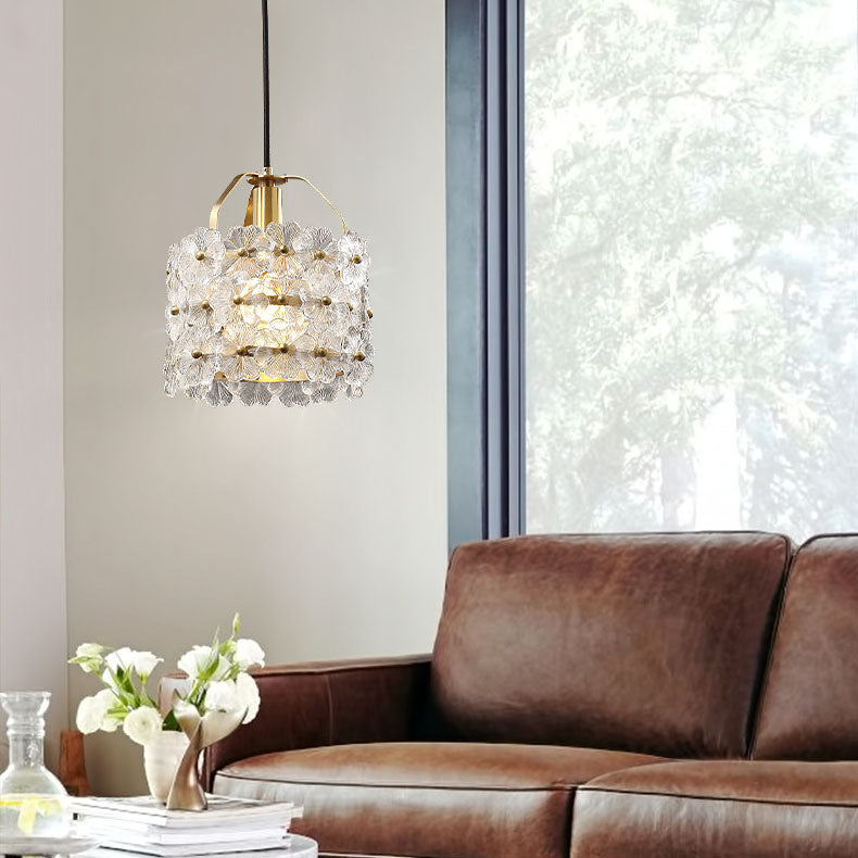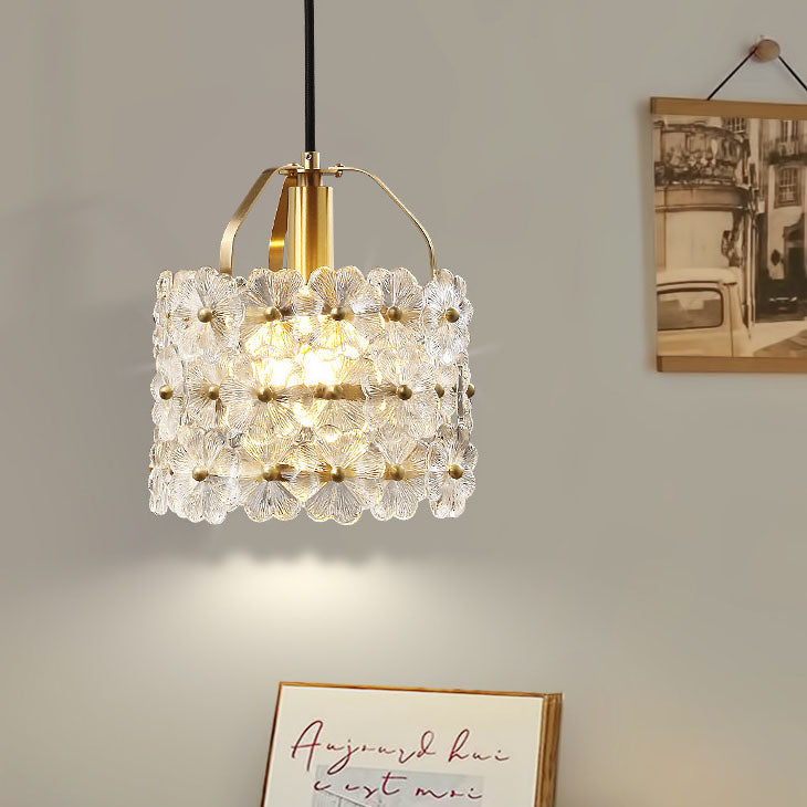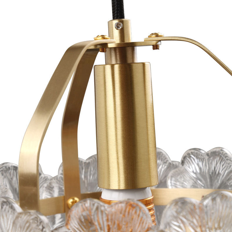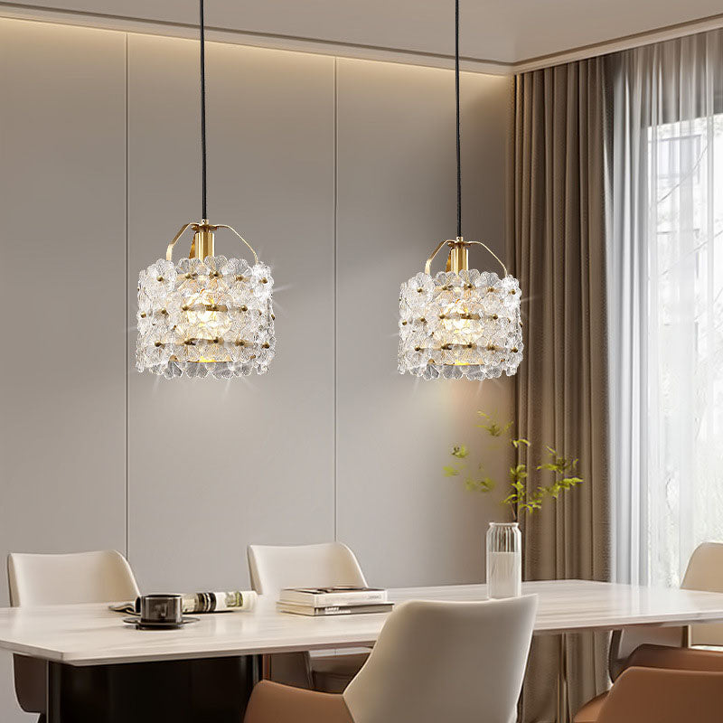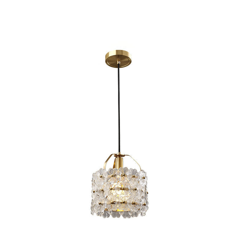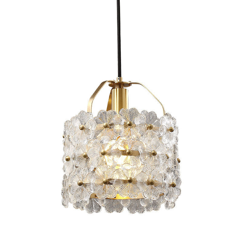 مصباح معلق فرنسي تقليدي مصنوع بالكامل من النحاس على شكل زهرة كريستالية، مزود بمصباح واحد، لغرفة الطعام
