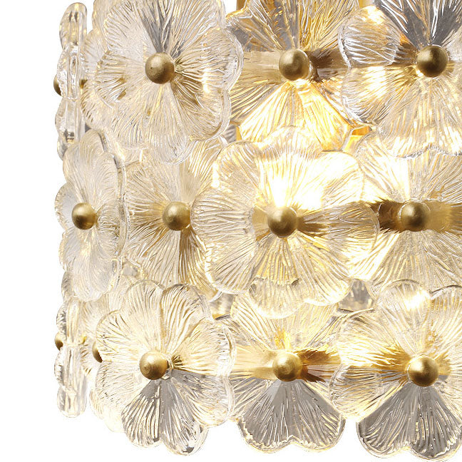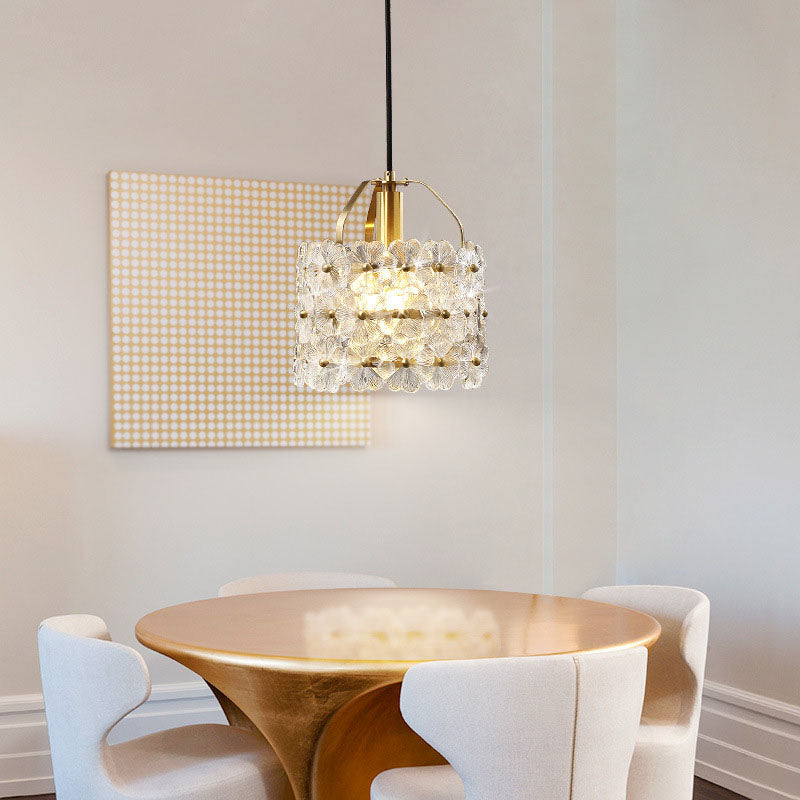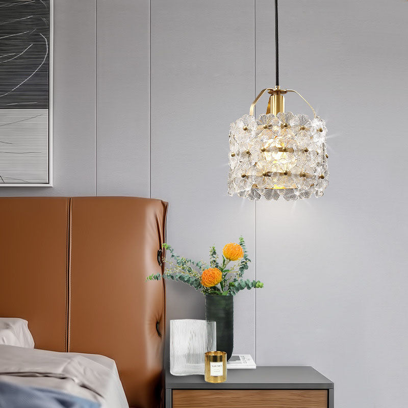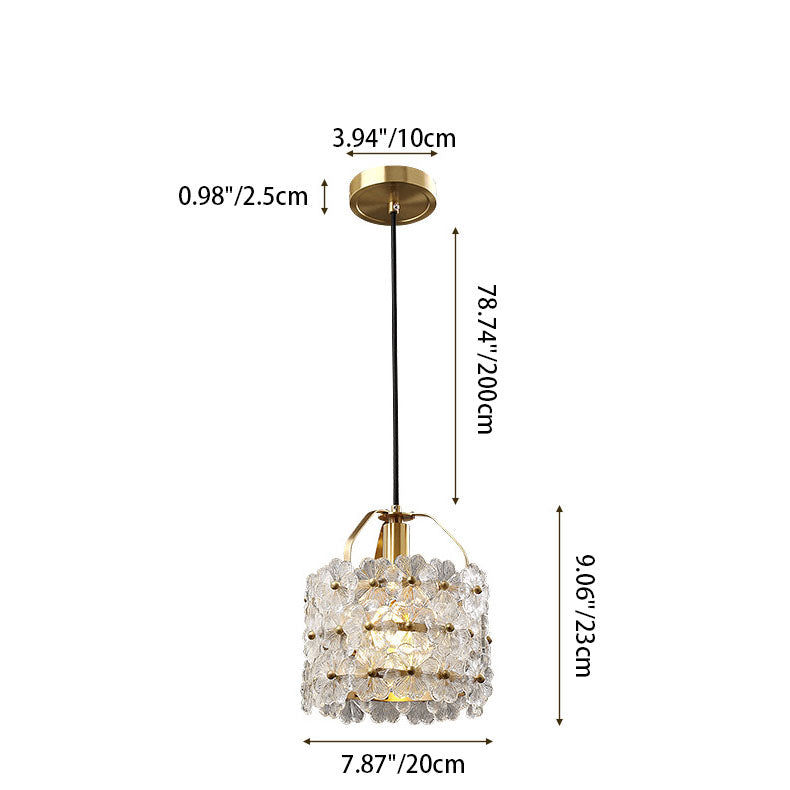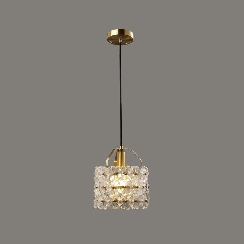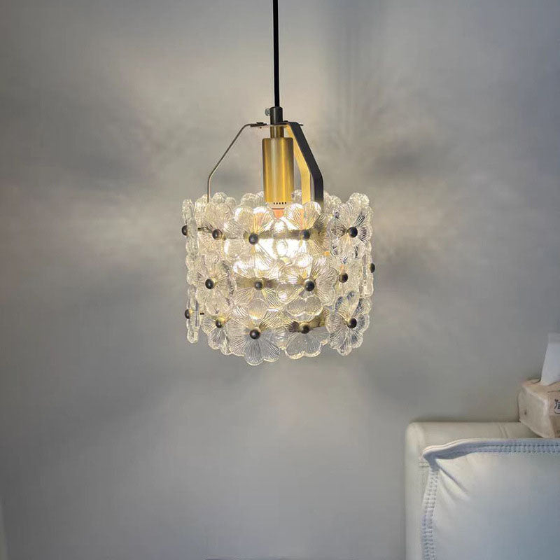 مصباح معلق فرنسي تقليدي مصنوع بالكامل من النحاس على شكل زهرة كريستالية، مزود بمصباح واحد، لغرفة الطعام
