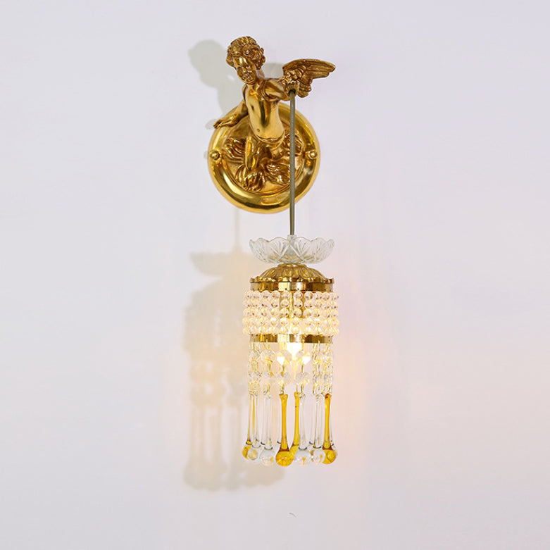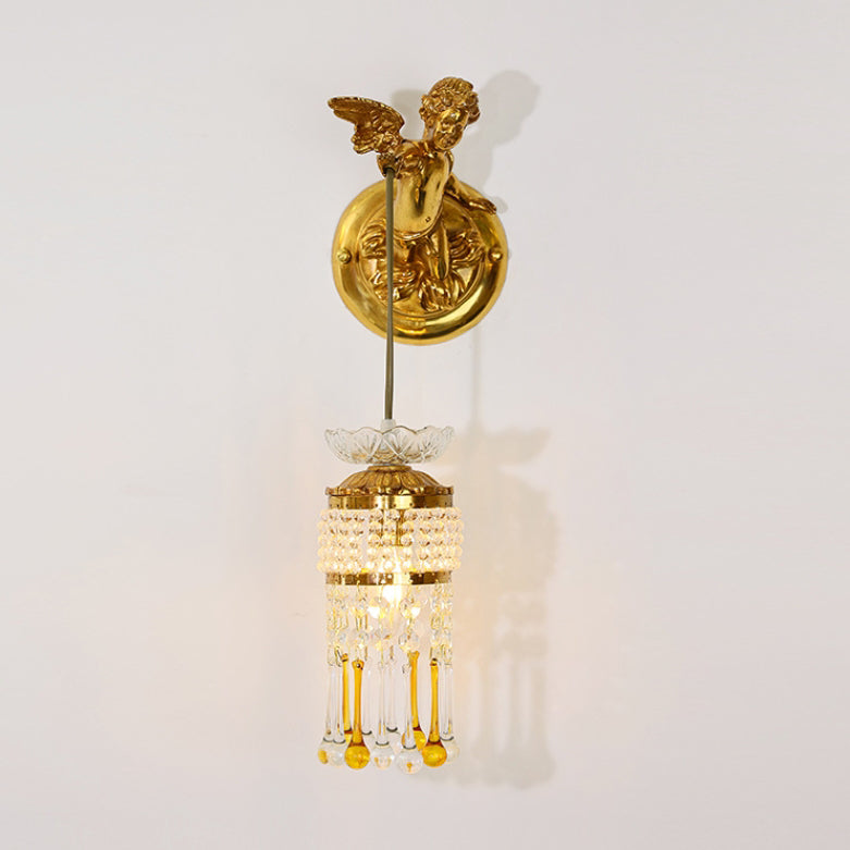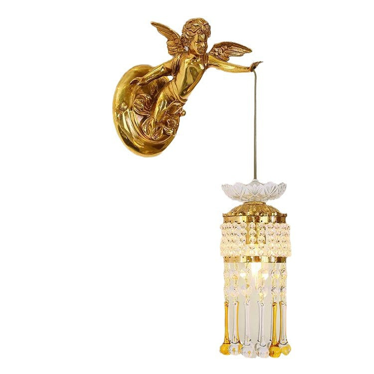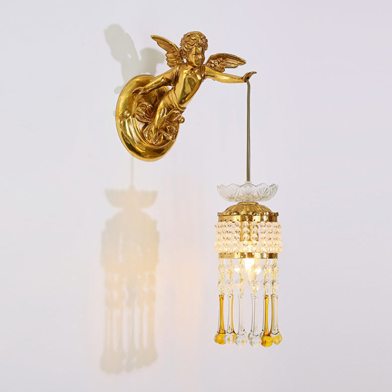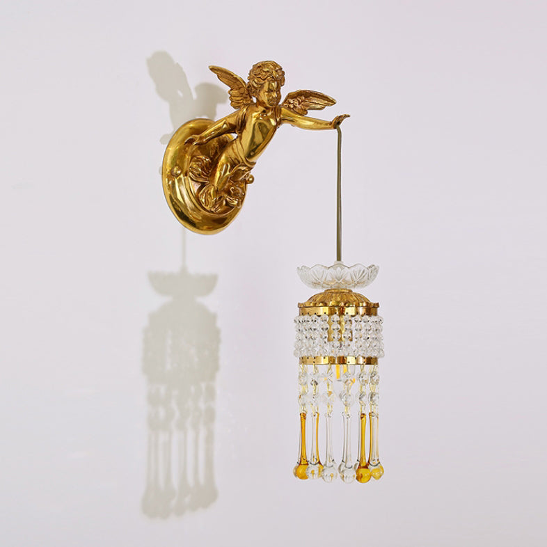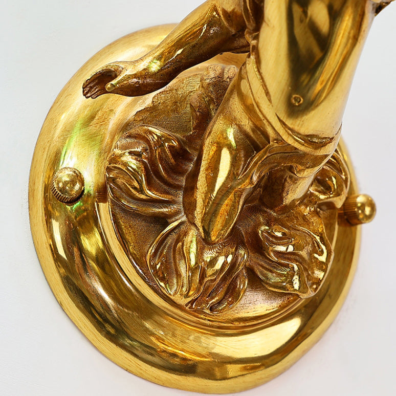 مصباح حائط فرنسي تقليدي على شكل زهرة ملاك من النحاس والزجاج مزود بإضاءة واحدة للممر