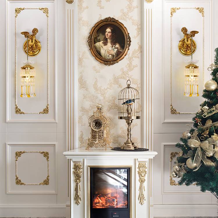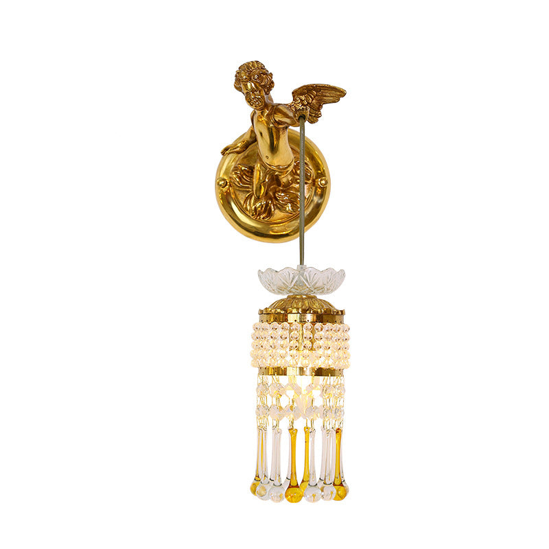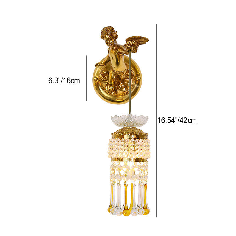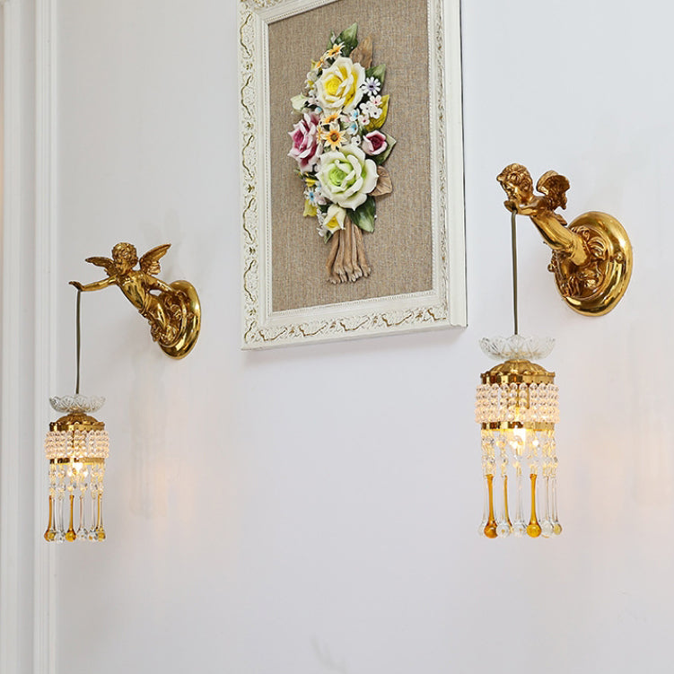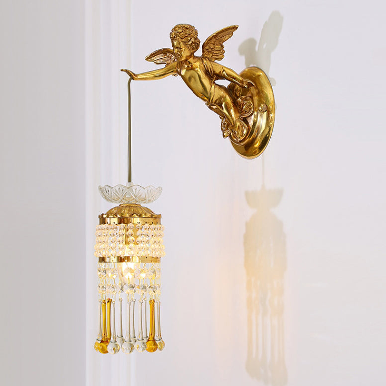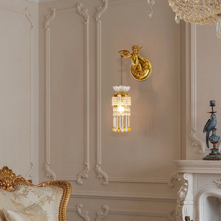 مصباح حائط فرنسي تقليدي على شكل زهرة ملاك من النحاس والزجاج مزود بإضاءة واحدة للممر