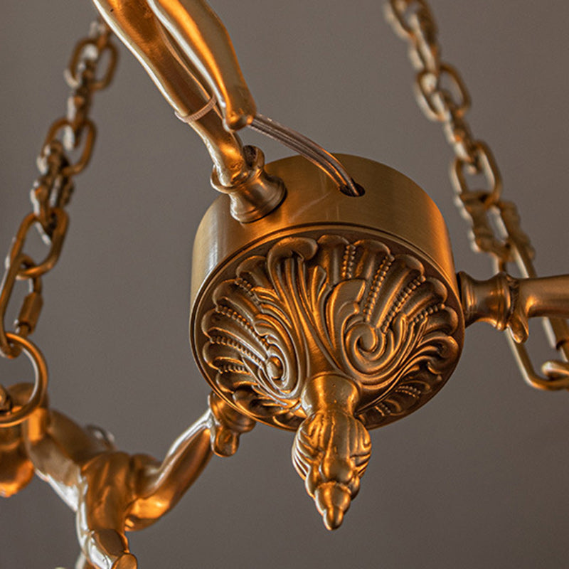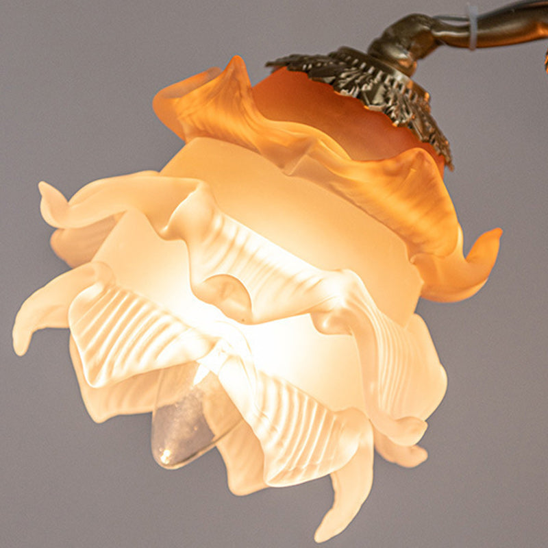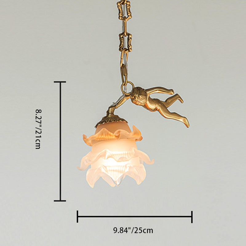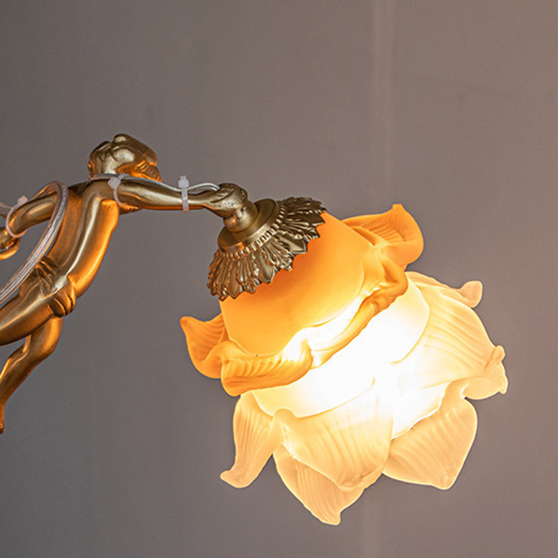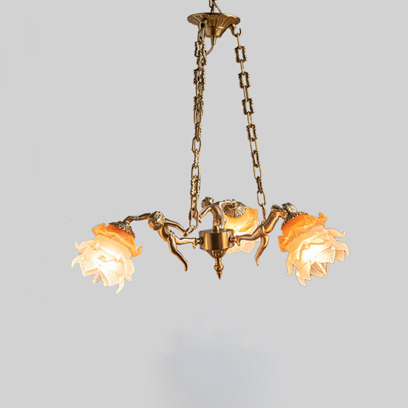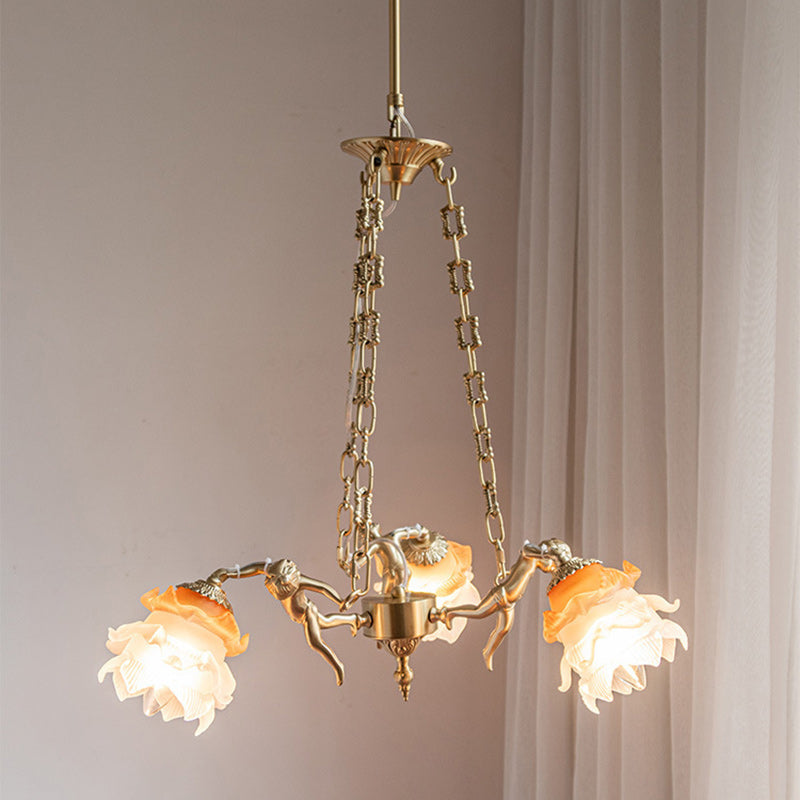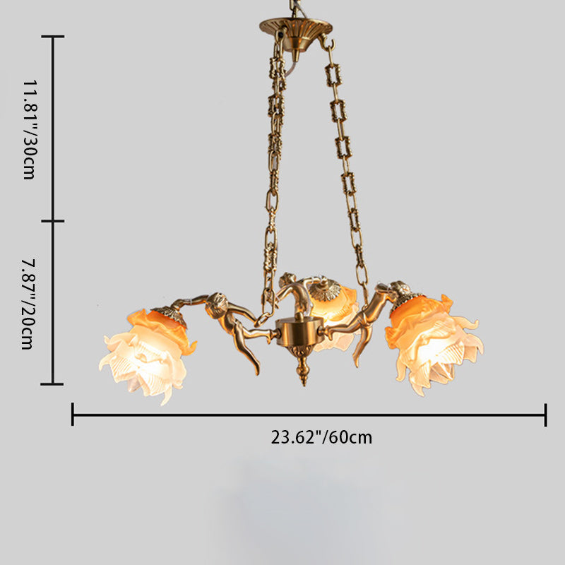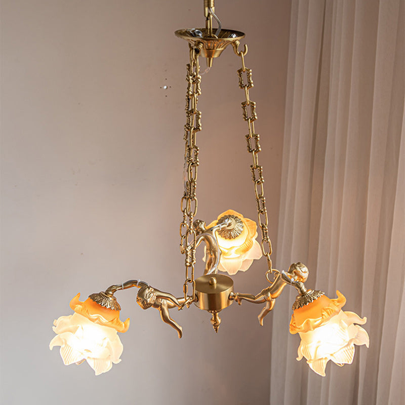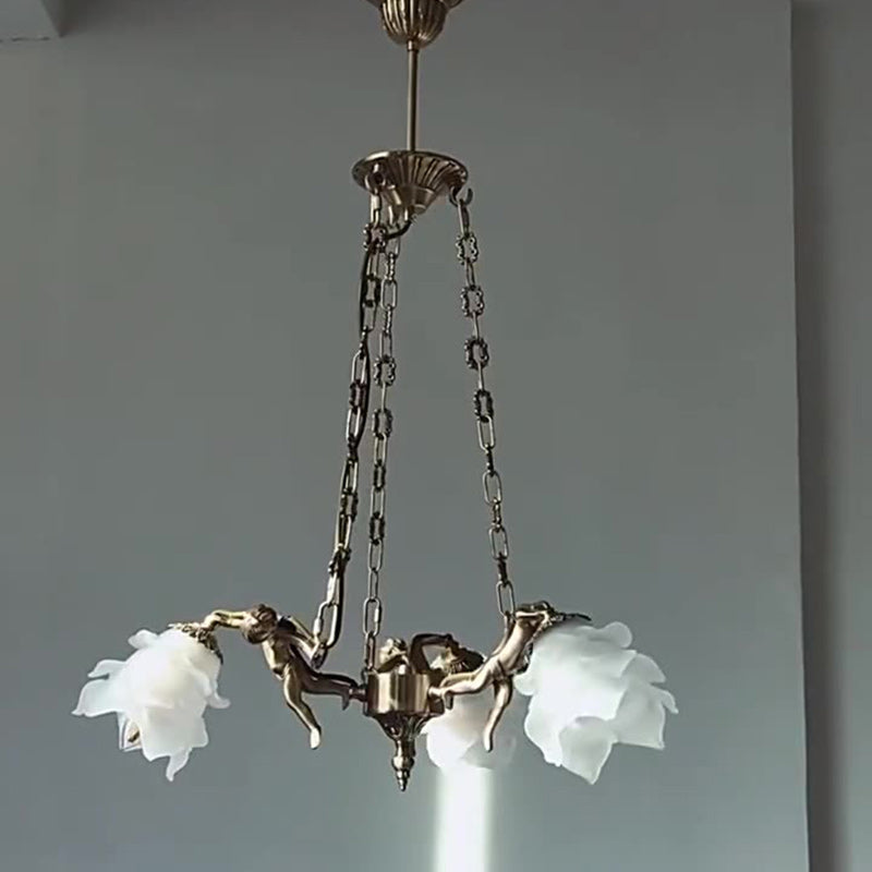 ثريا فرنسية عتيقة تقليدية من النحاس على شكل زهرة ملائكية زجاجية بغطاء 1/3 ضوء لغرفة المعيشة