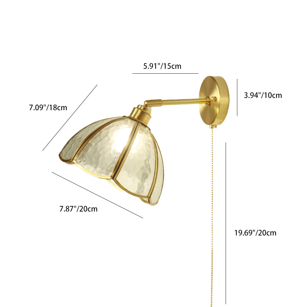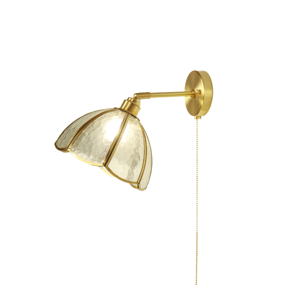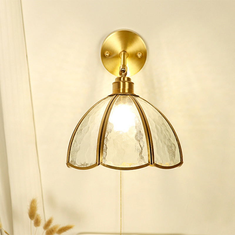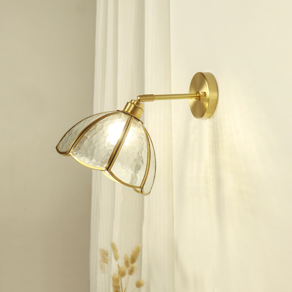 مصباح حائطي فرنسي تقليدي عتيق من النحاس الأصفر على شكل زهرة زجاجية مزود بضوء واحد لغرفة الطعام
