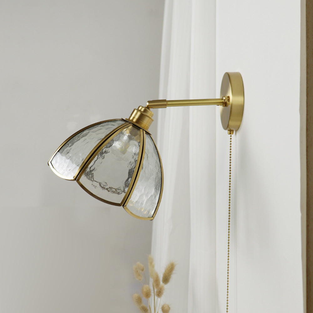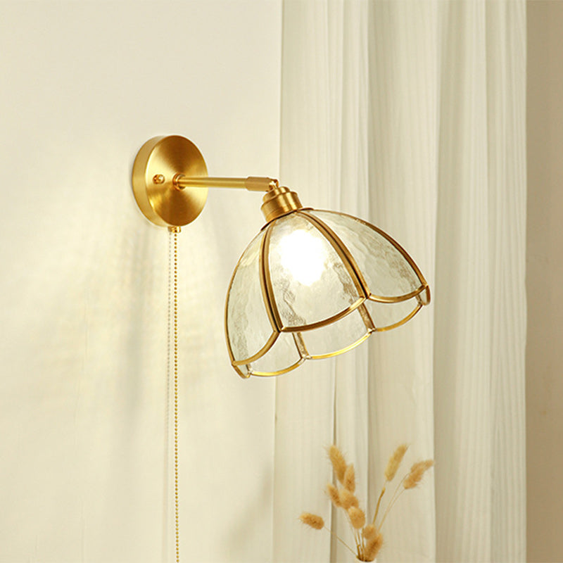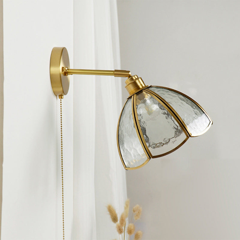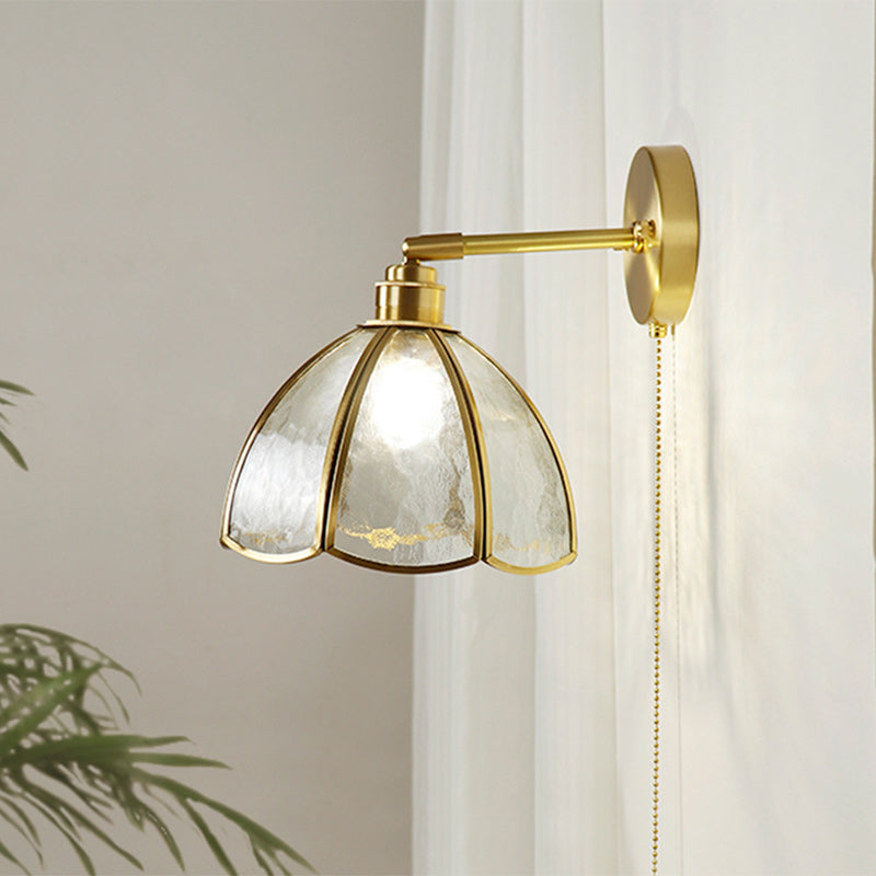 مصباح حائطي فرنسي تقليدي عتيق من النحاس الأصفر على شكل زهرة زجاجية مزود بضوء واحد لغرفة الطعام