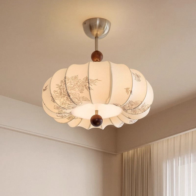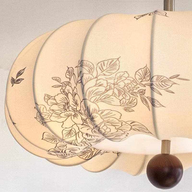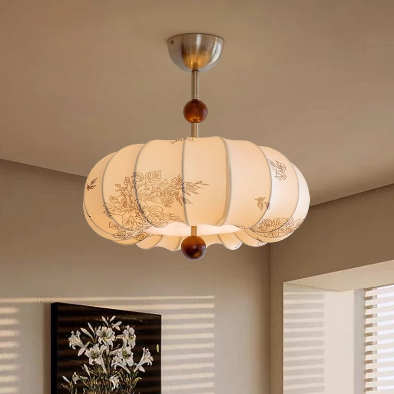 مصباح معلق دائري الشكل من خشب الدردار الفرنسي التقليدي، بخمسة مصابيح، بتصميم زهور، لغرفة الطعام