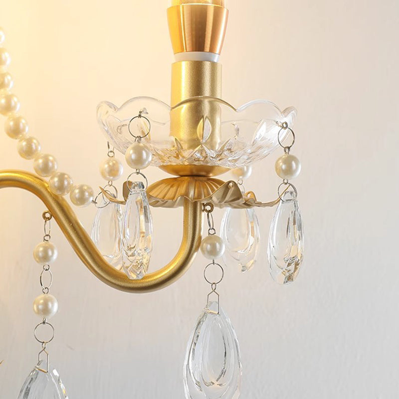 مصباح حائطي تقليدي فرنسي دائري منحني مصنوع من الزجاج واللؤلؤ الصناعي والكريستال والحديد مزود بمصباحين لغرفة المعيشة