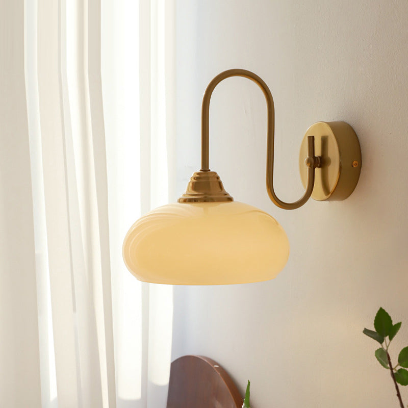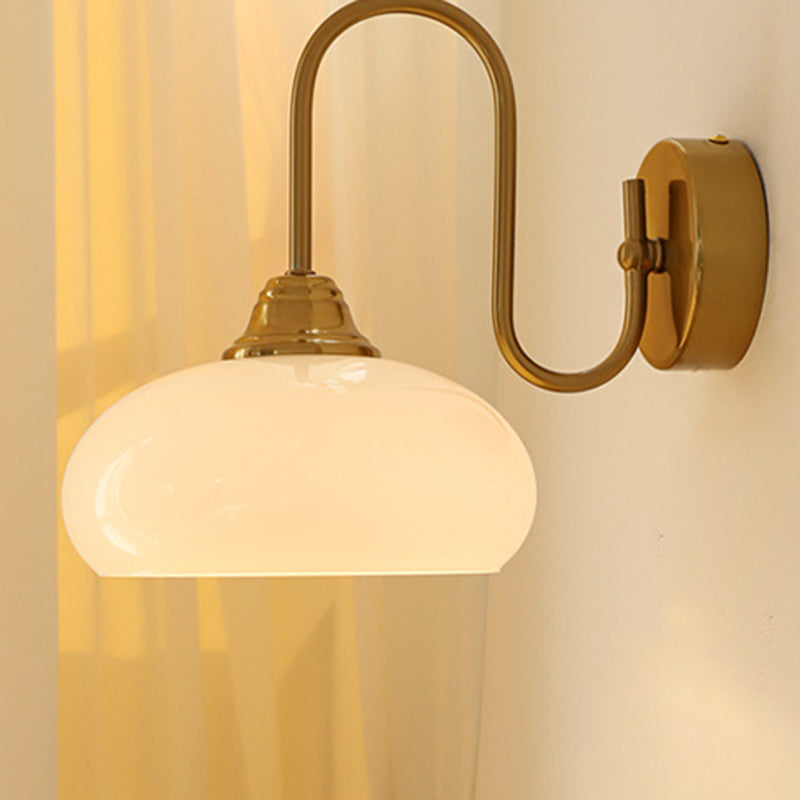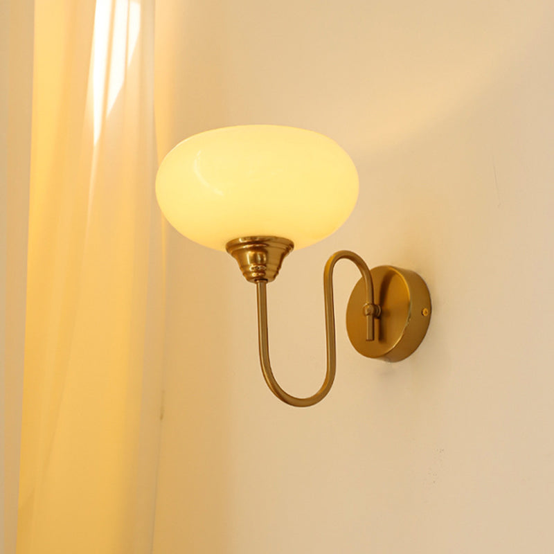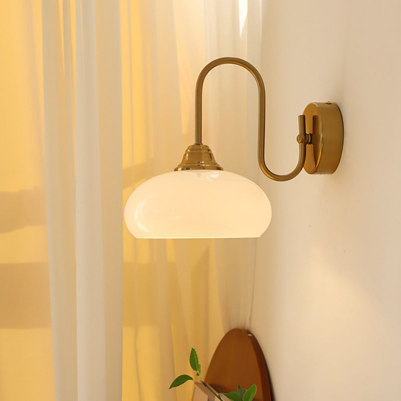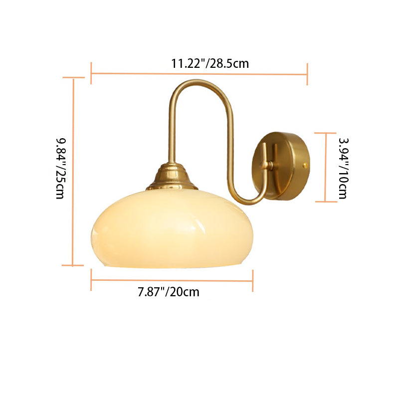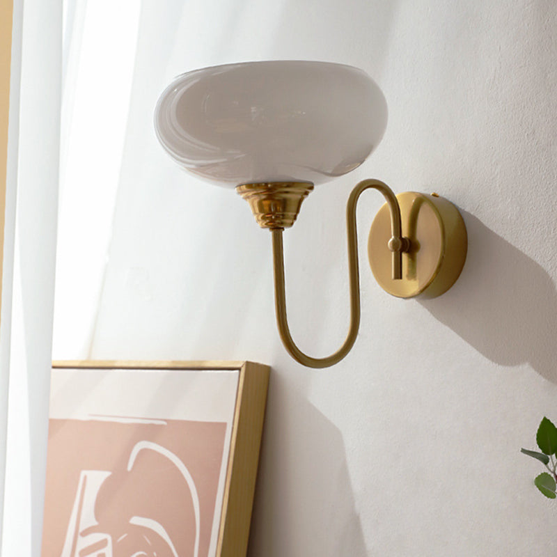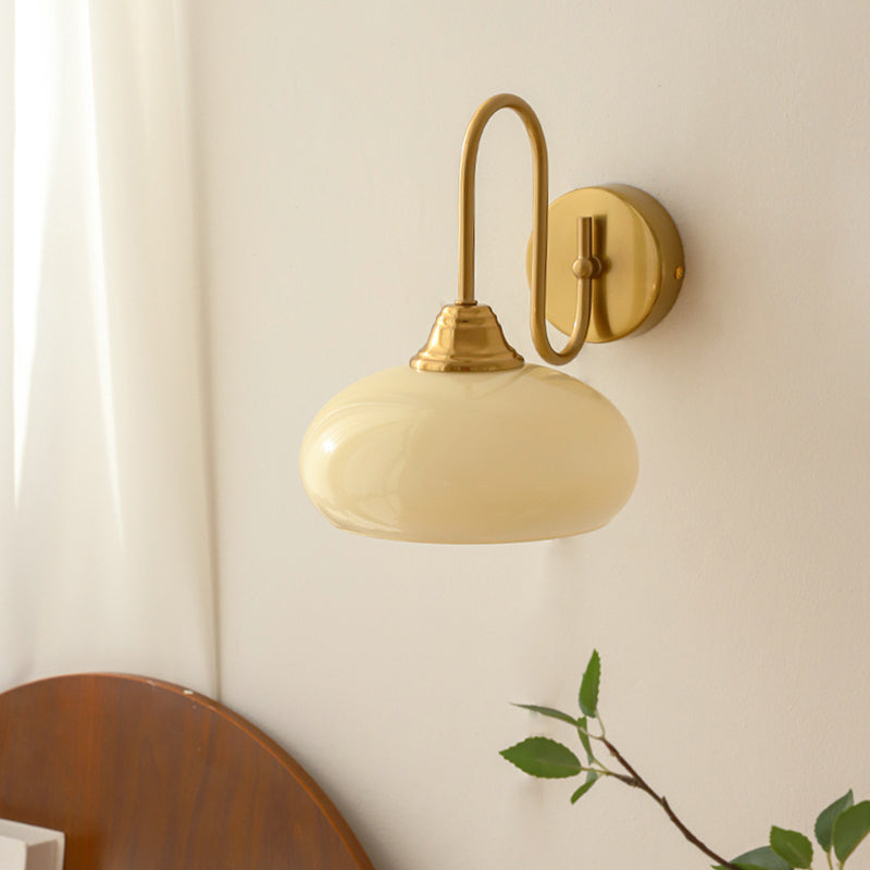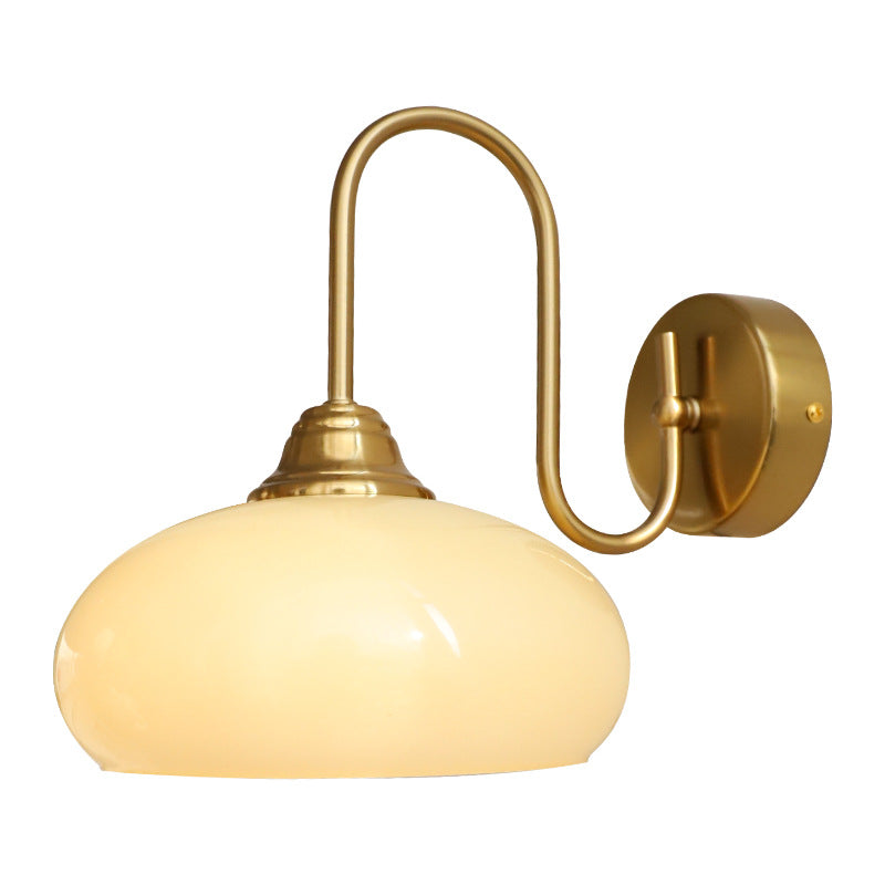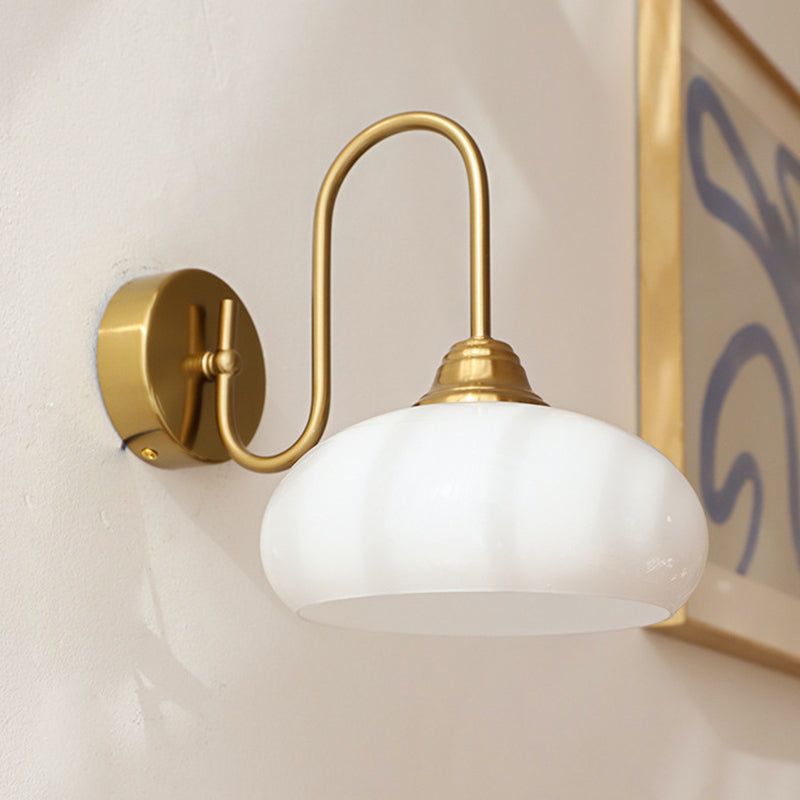 مصباح حائط فرنسي تقليدي مصنوع من النحاس والزجاج بتصميم دائري، مزود بضوء واحد، مناسب لغرفة النوم