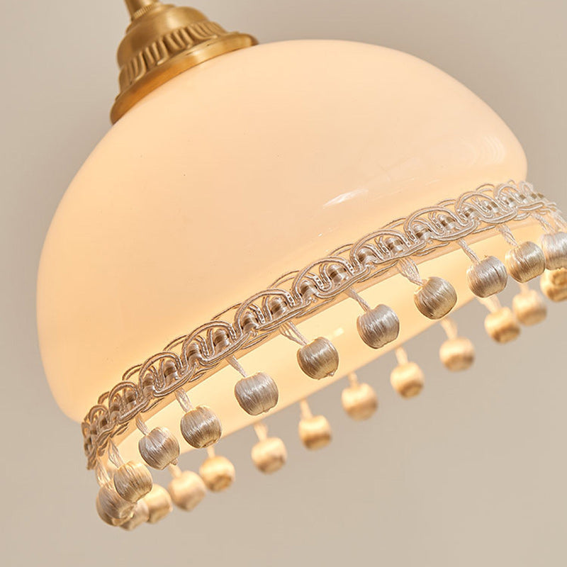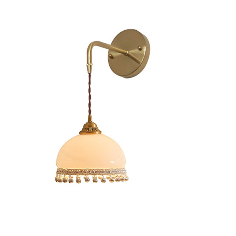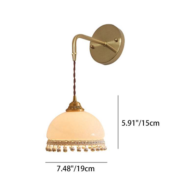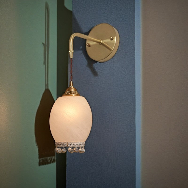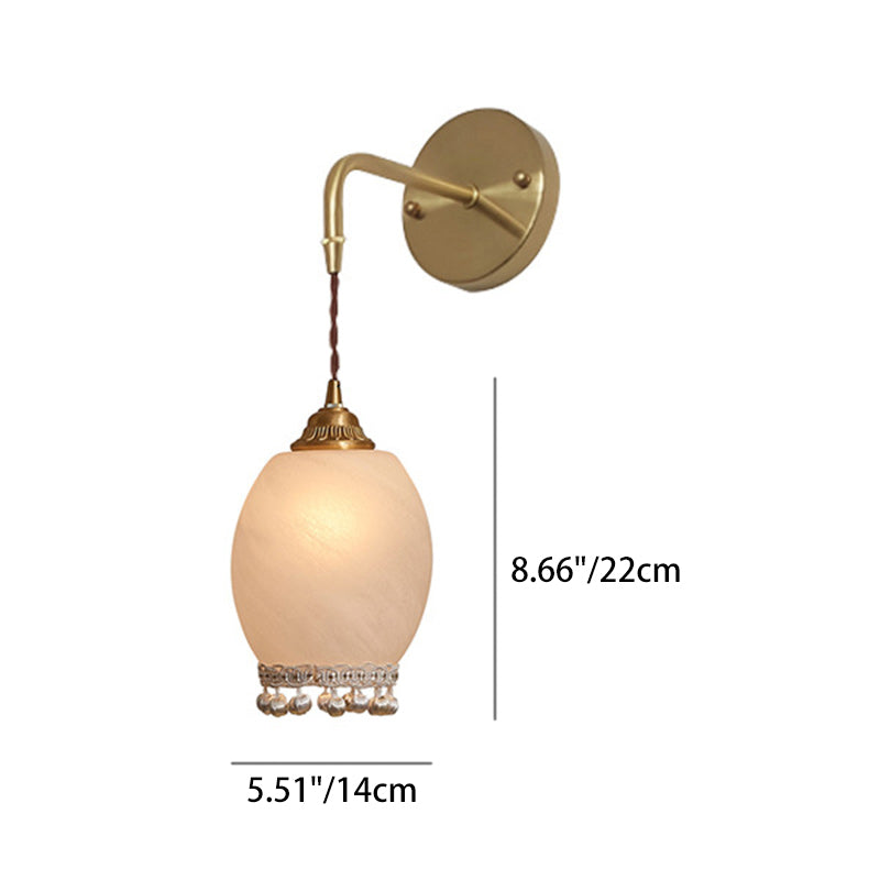 مصباح حائط فرنسي تقليدي مصنوع من النحاس والزجاج والحرير على شكل قبة بيضاوية الشكل مزود بإضاءة واحدة لوضعه بجانب السرير