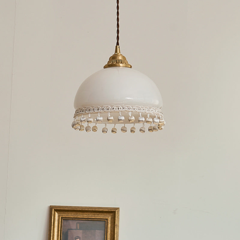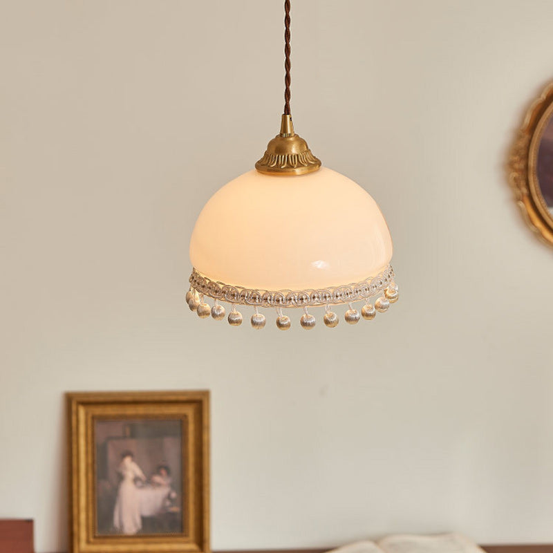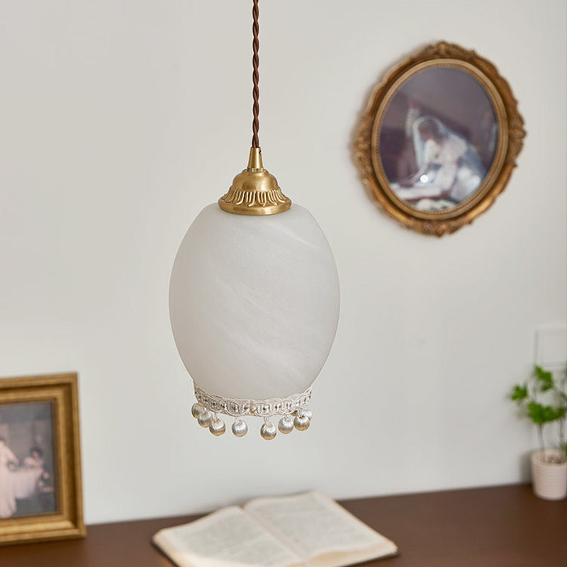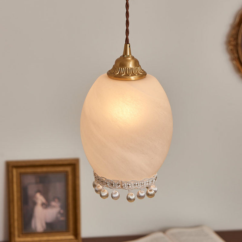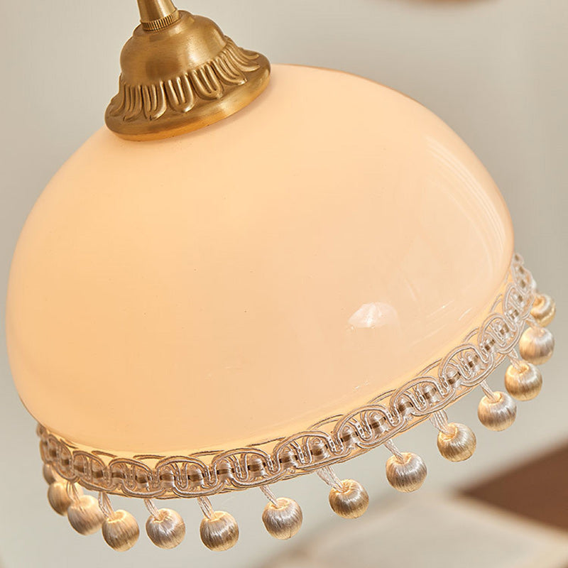 مصباح حائط فرنسي تقليدي مصنوع من النحاس والزجاج والحرير على شكل قبة بيضاوية الشكل مزود بإضاءة واحدة لوضعه بجانب السرير