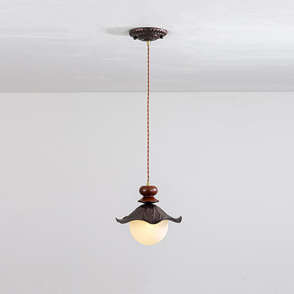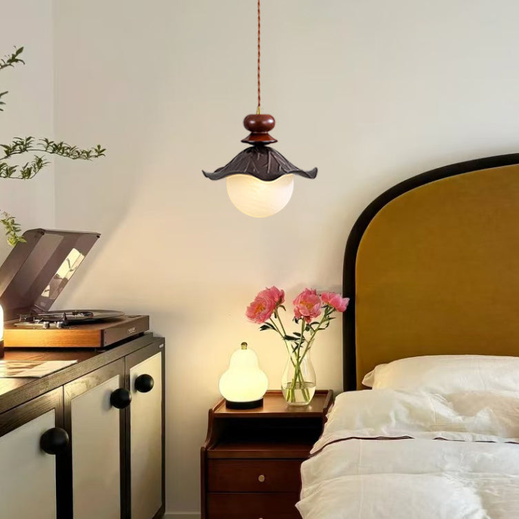 مصباح معلق فرنسي تقليدي ذو حافة مموجة من الحديد والزجاج لغرفة النوم