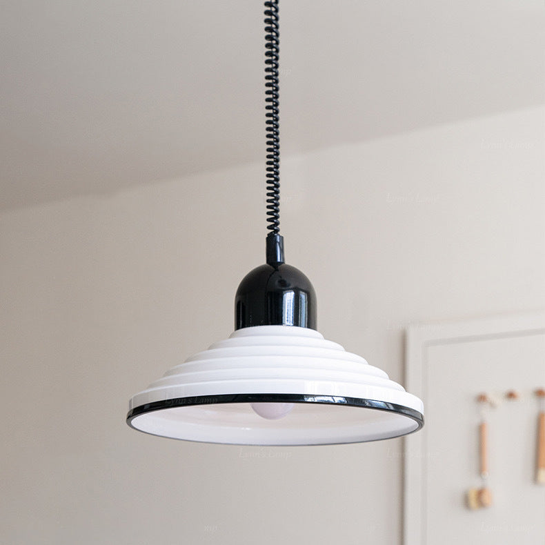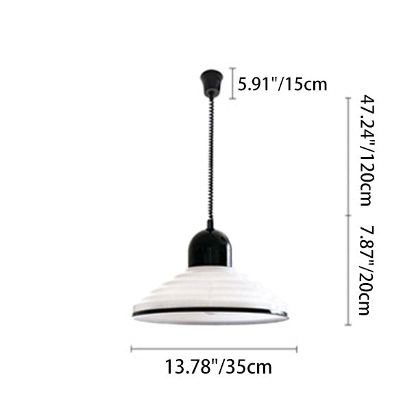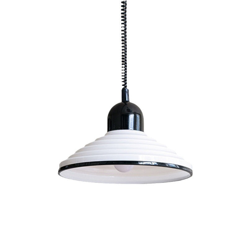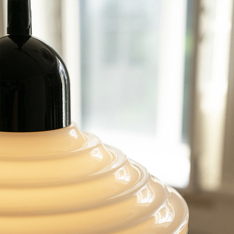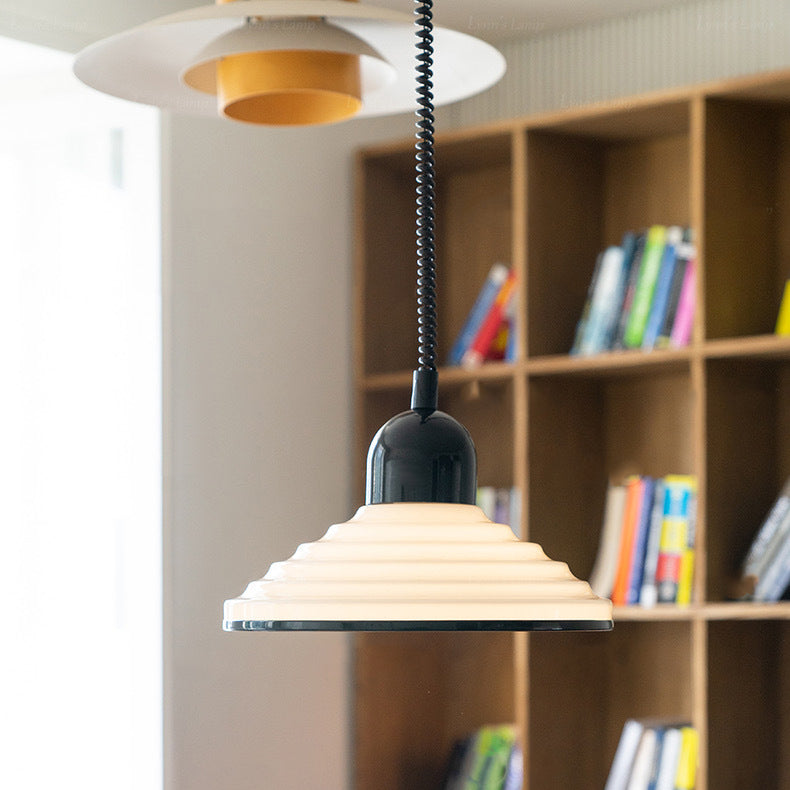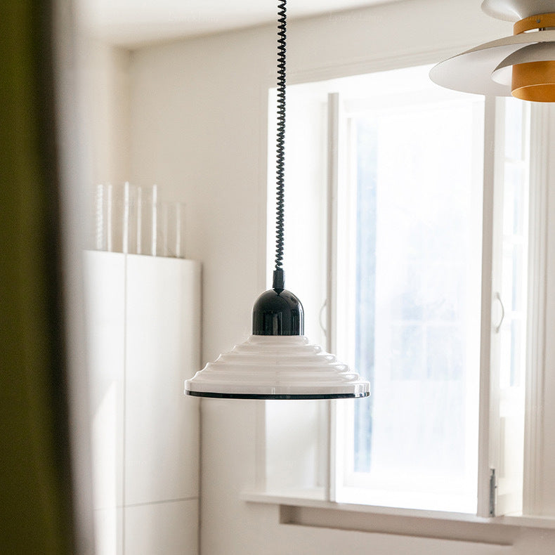 مصباح معلق فرنسي تقليدي من الزجاج المموج ذو غطاء مخروطي، مزود بضوء واحد، لغرفة المعيشة