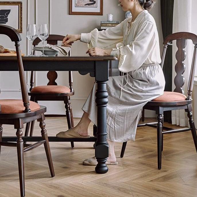 Traditional French Flannelette Solid Wood Dining Chair Backrest Armless For Dining Room