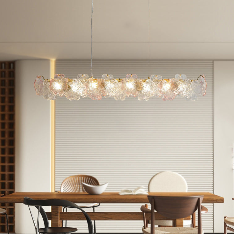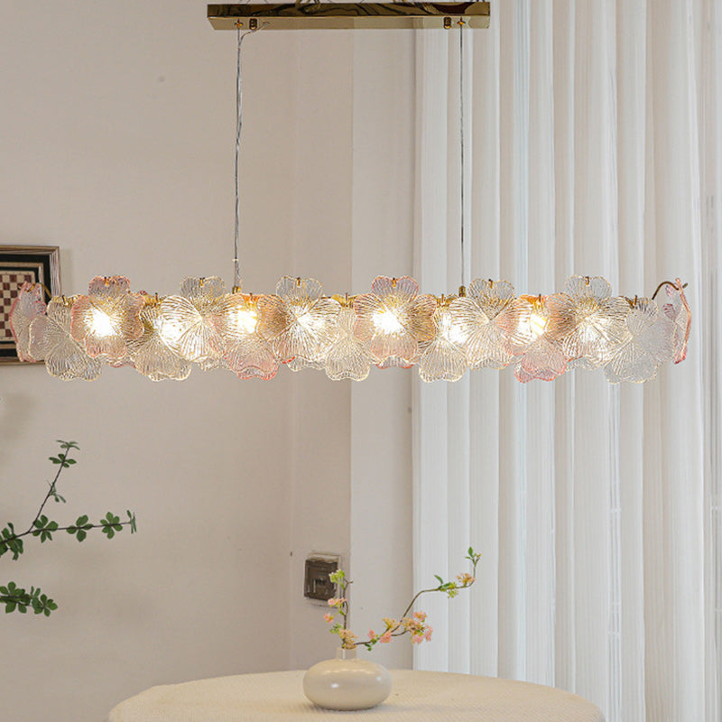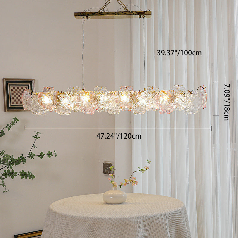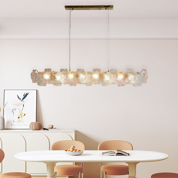 ثريات جزيرة من الحديد والفولاذ المقاوم للصدأ والزجاج على شكل زهرة البرسيم ذات الأربع أوراق، 6/8 ضوء لغرفة الطعام