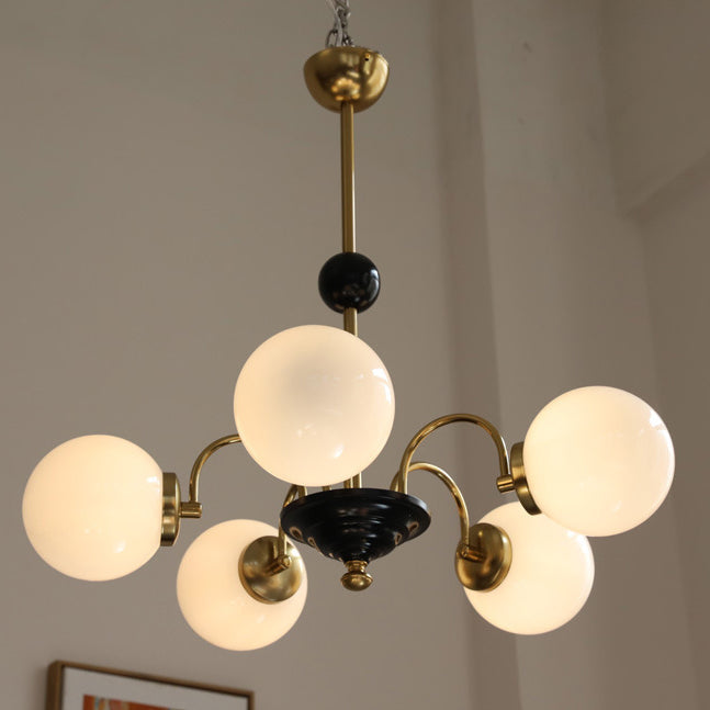 ثريا فرنسية تقليدية من النحاس والزجاج بثلاثة أو أربعة أو خمسة مصابيح لغرفة المعيشة