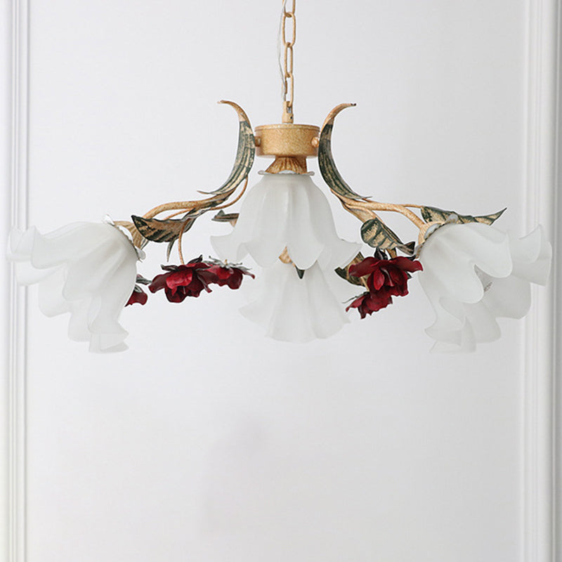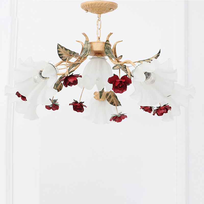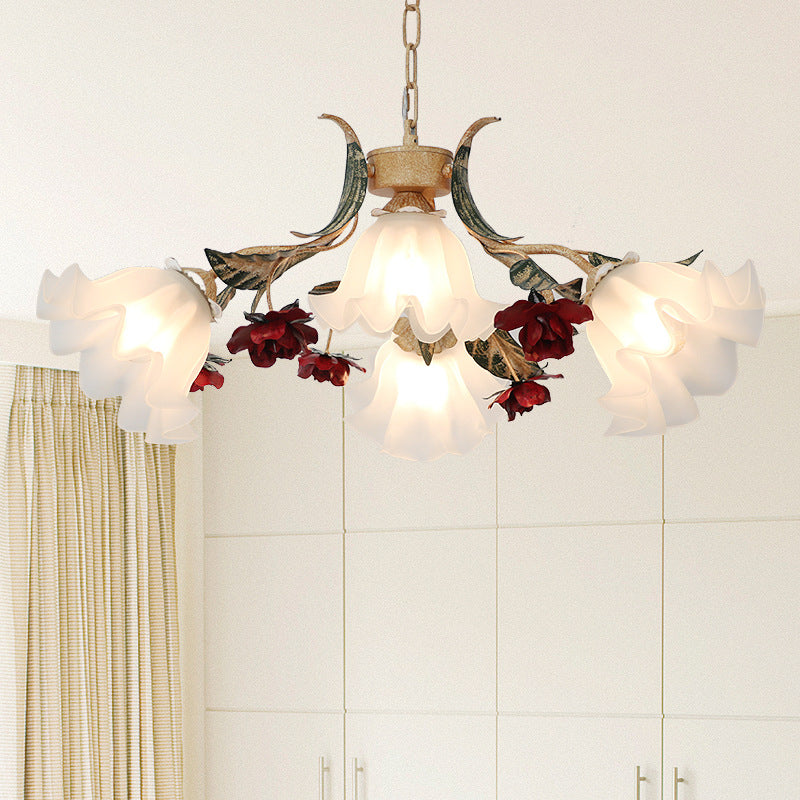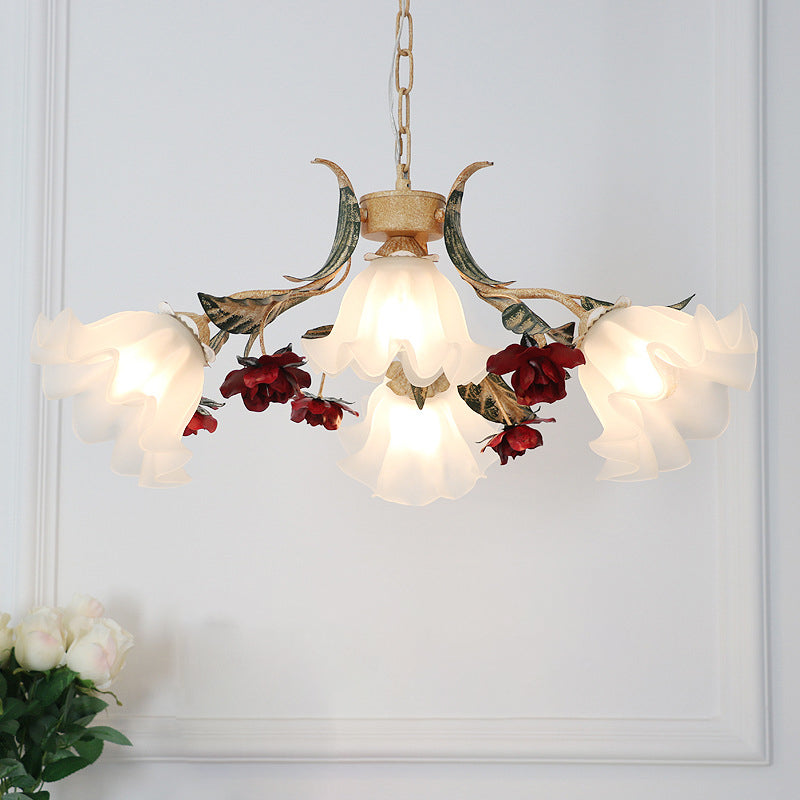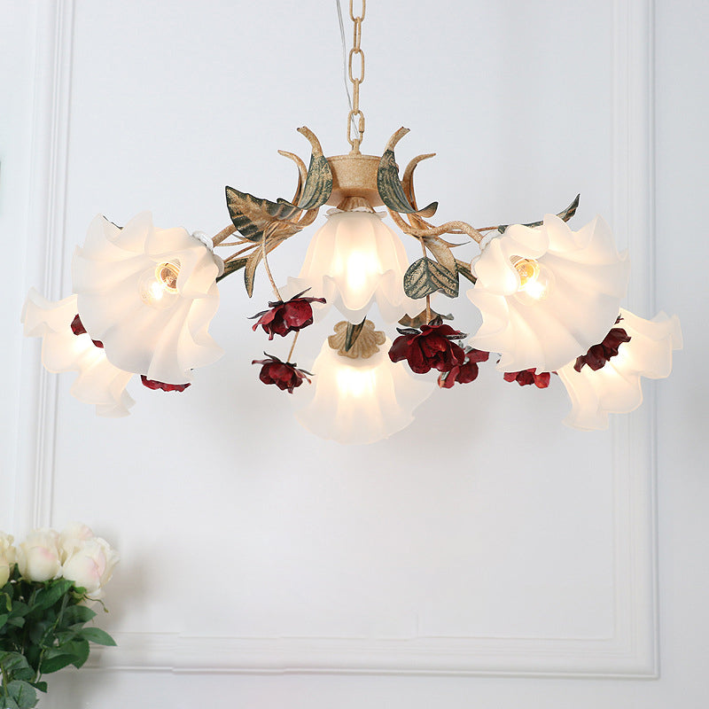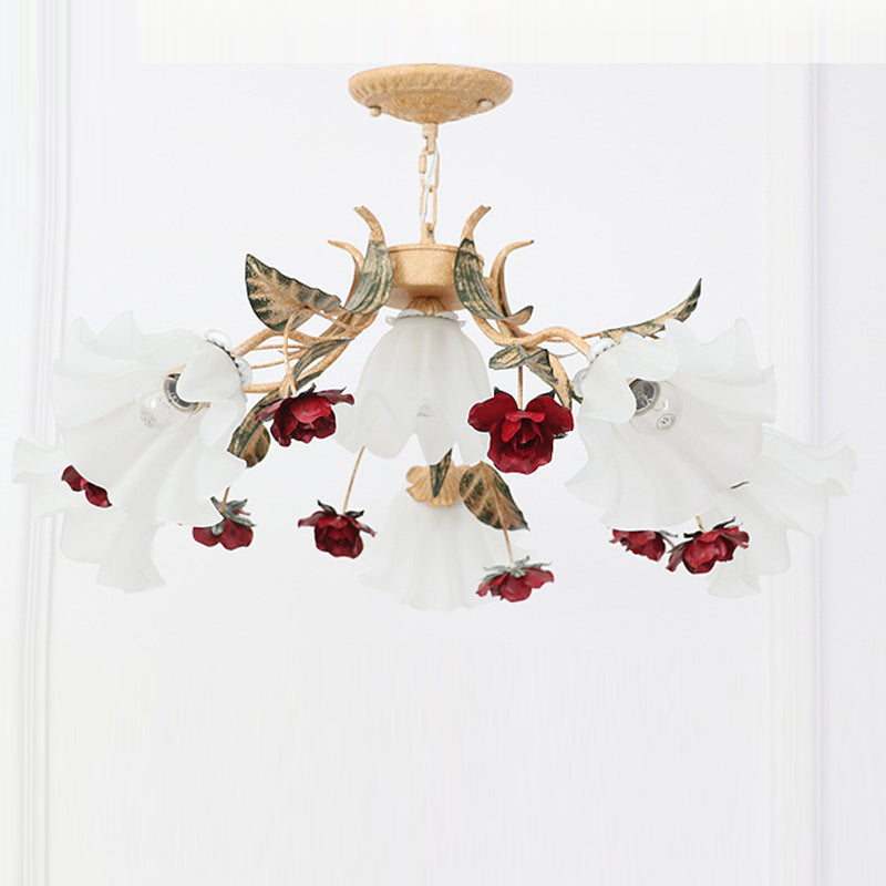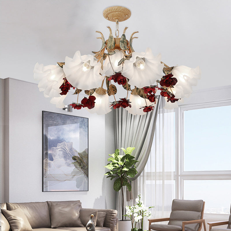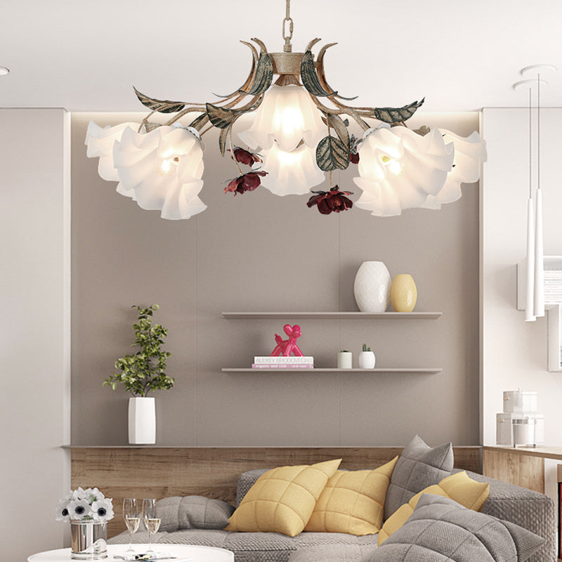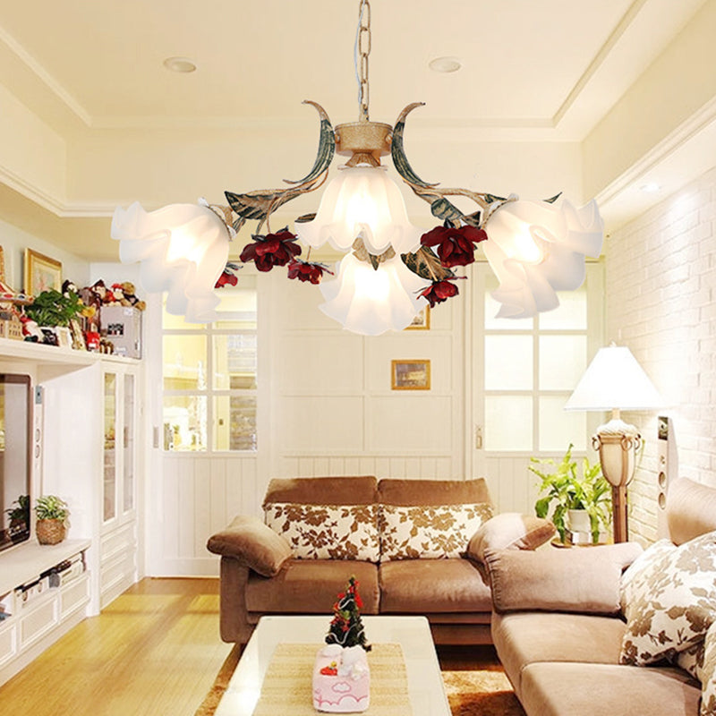 ثريا فرنسية تقليدية على شكل زهرة الورد مصنوعة من الزجاج والحديد مكونة من 4/6/9 مصابيح لغرفة المعيشة