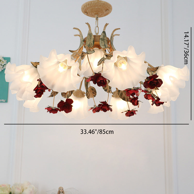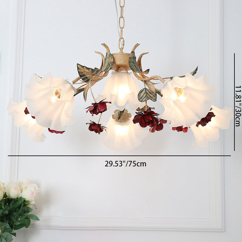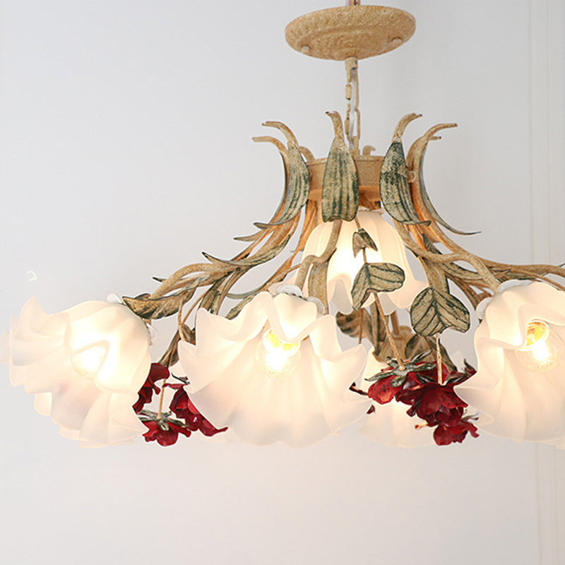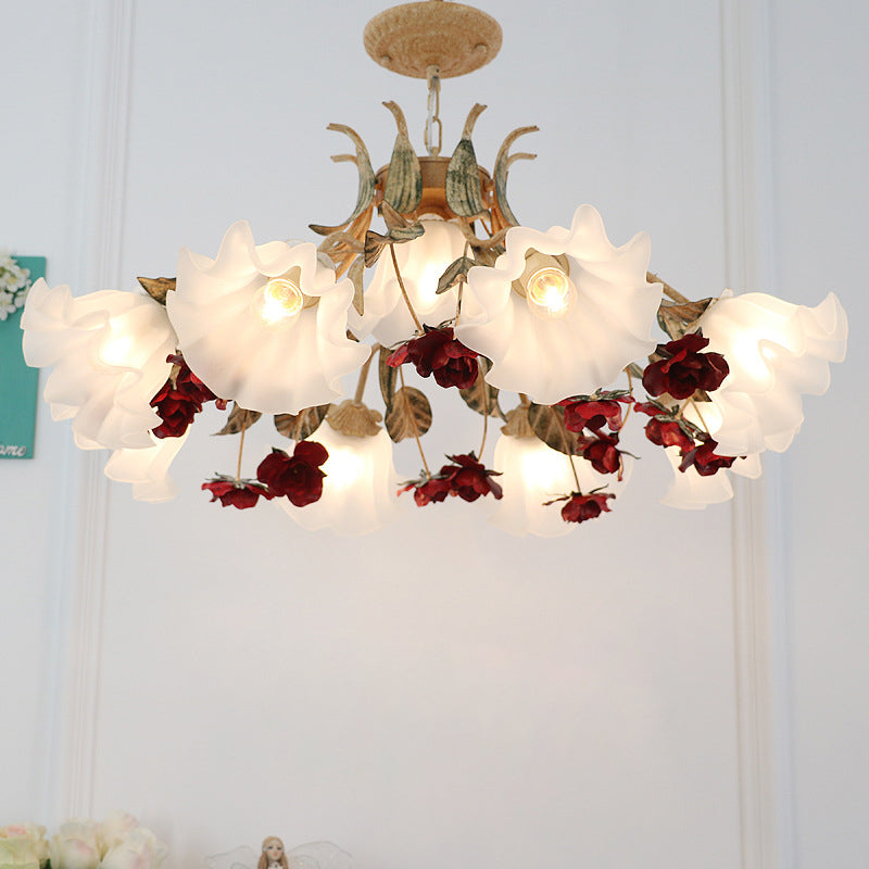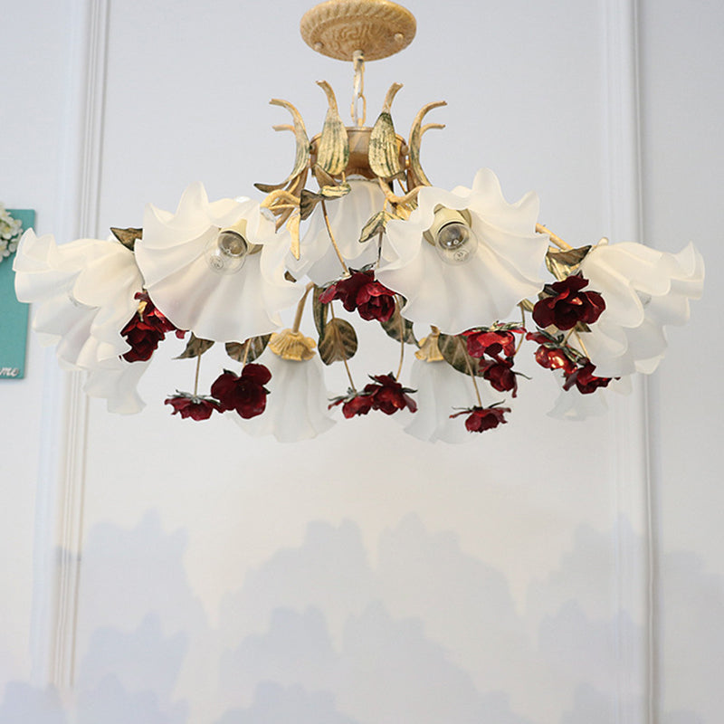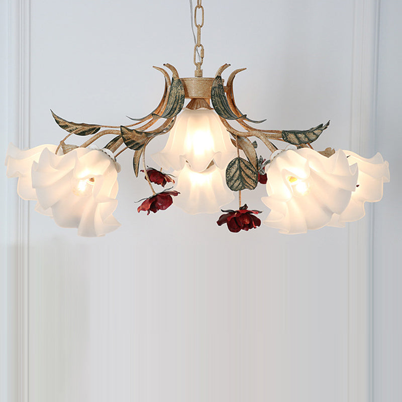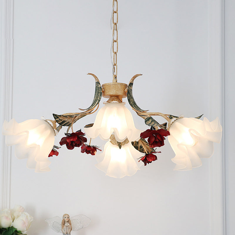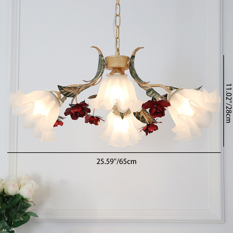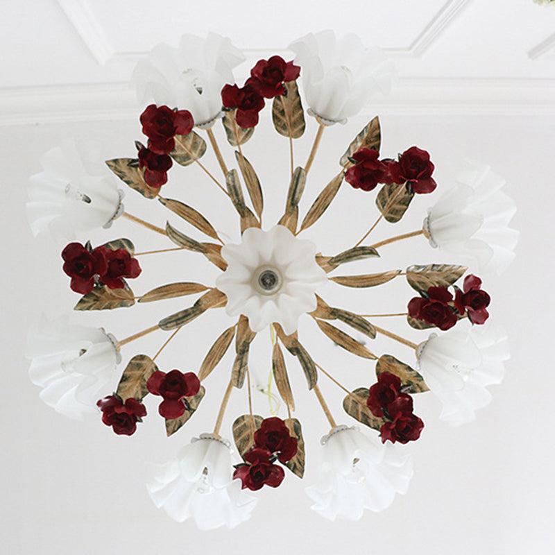 ثريا فرنسية تقليدية على شكل زهرة الورد مصنوعة من الزجاج والحديد مكونة من 4/6/9 مصابيح لغرفة المعيشة