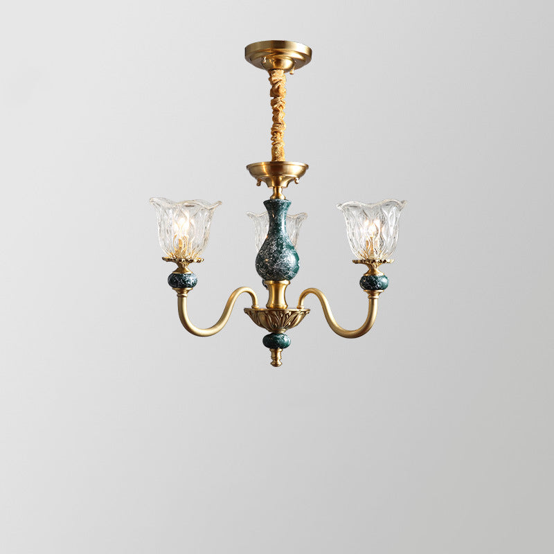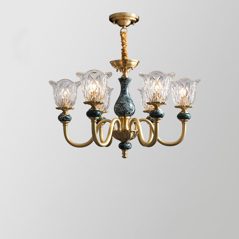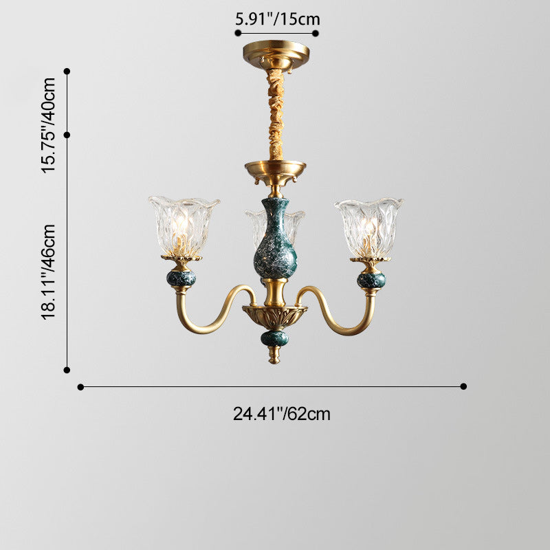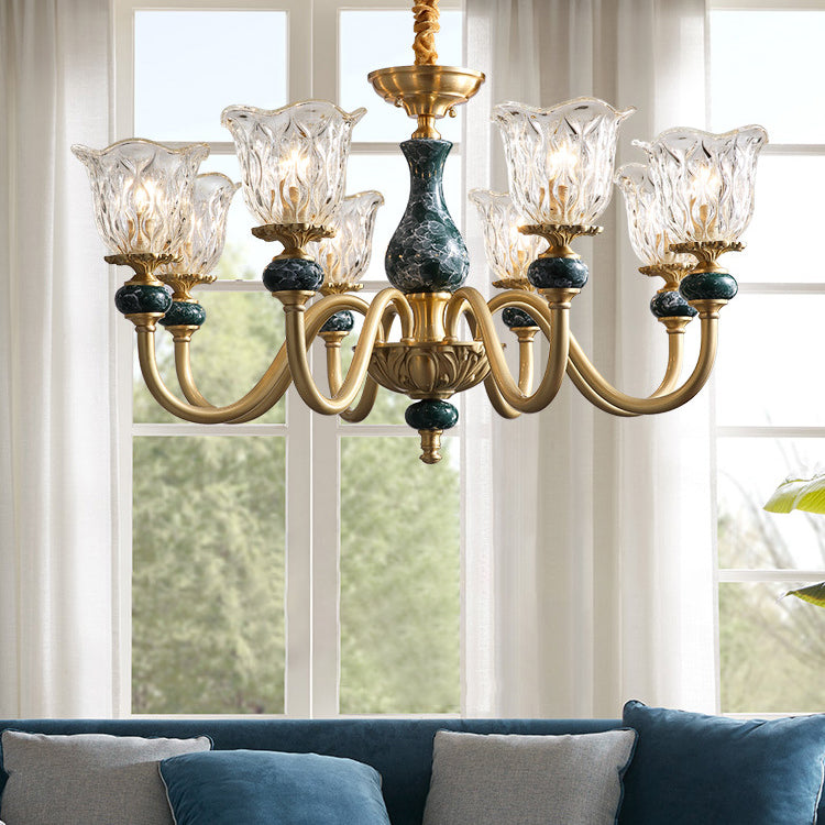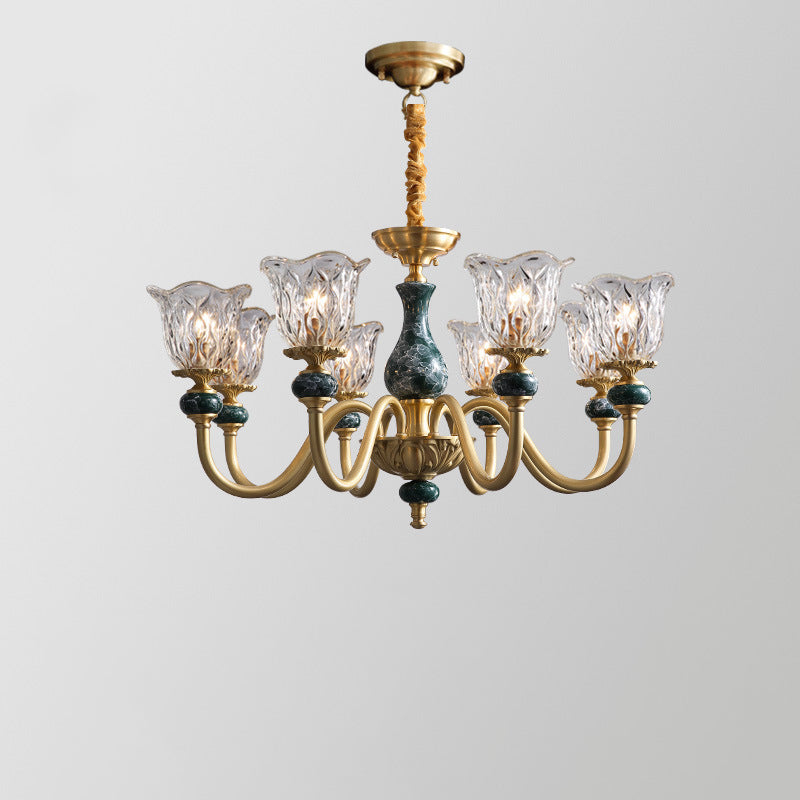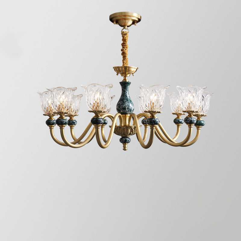ثريا فرنسية تقليدية دائرية مصنوعة من النحاس والزجاج والسيراميك، 3/6/8/10 مصابيح لغرفة المعيشة