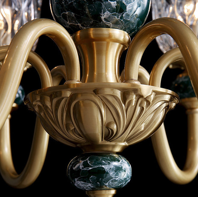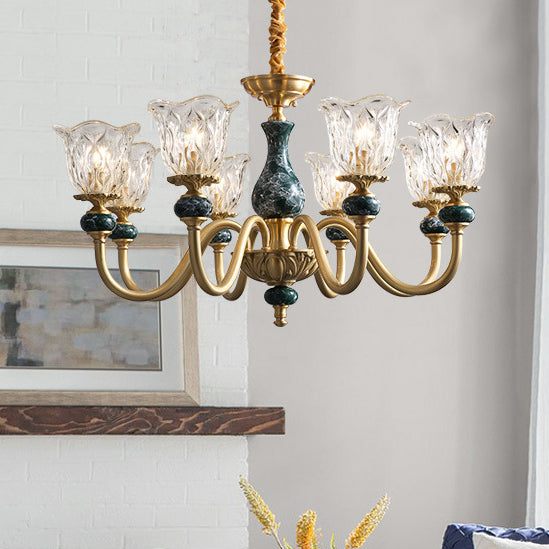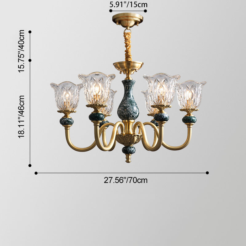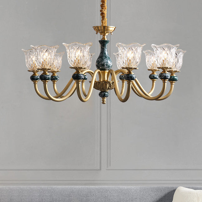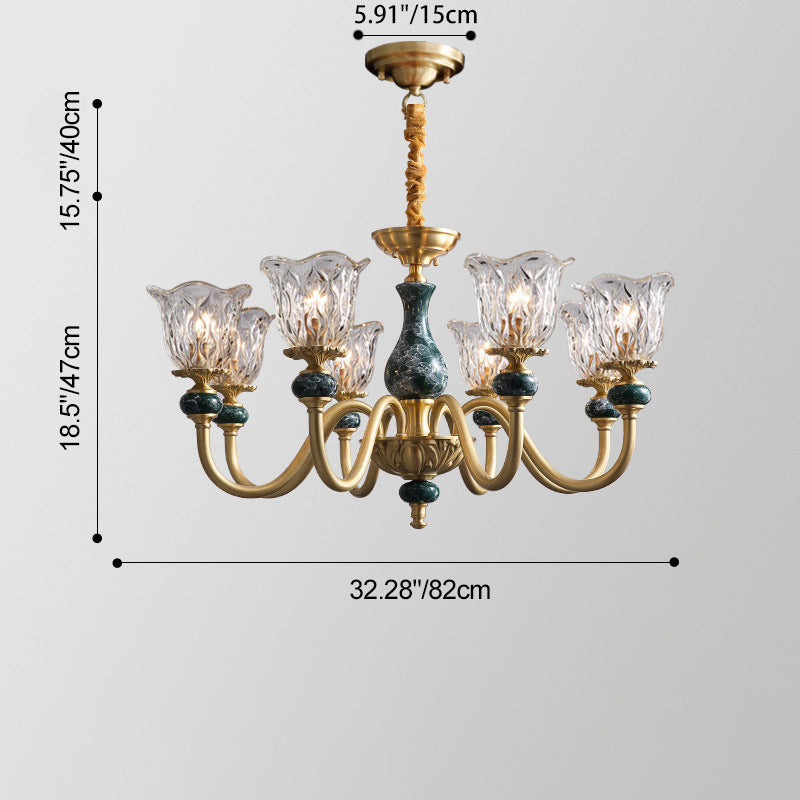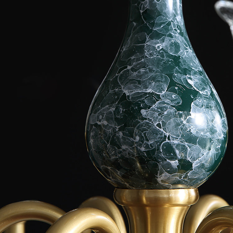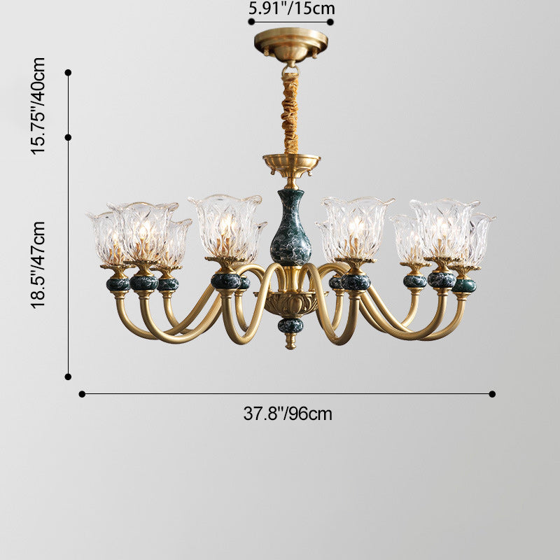 ثريا فرنسية تقليدية دائرية مصنوعة من النحاس والزجاج والسيراميك، 3/6/8/10 مصابيح لغرفة المعيشة