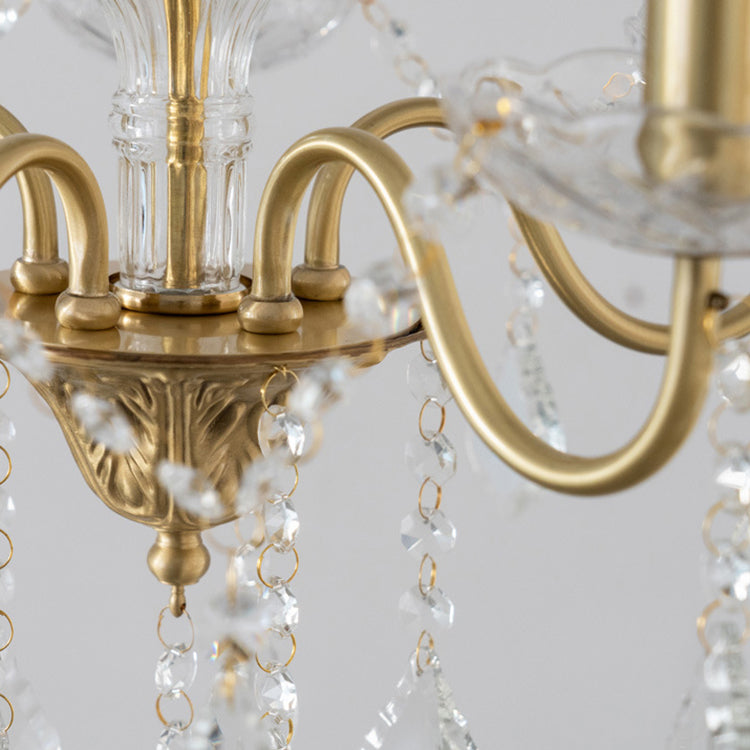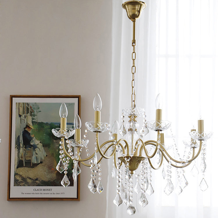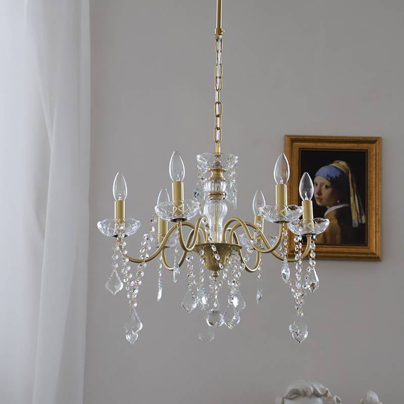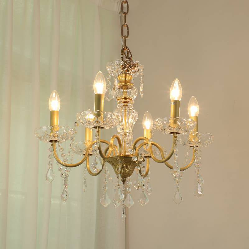 ثريا كريستالية فرنسية تقليدية دائرية مصنوعة من النحاس والزجاج، 5/6/8 مصابيح لغرفة المعيشة