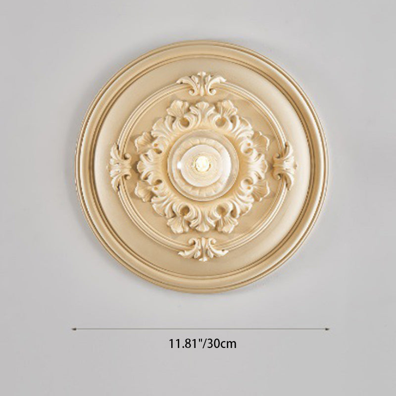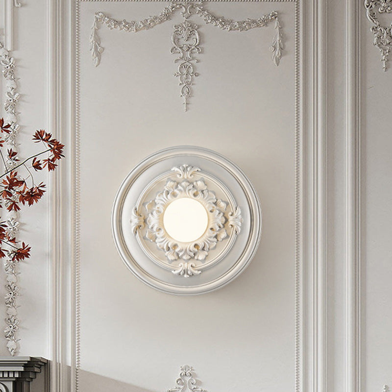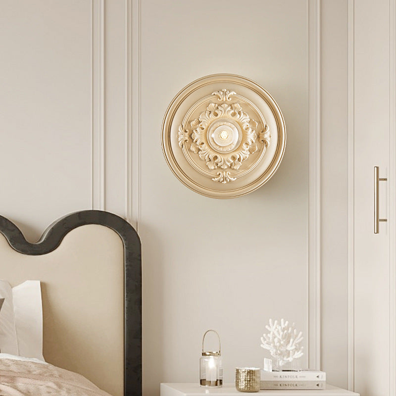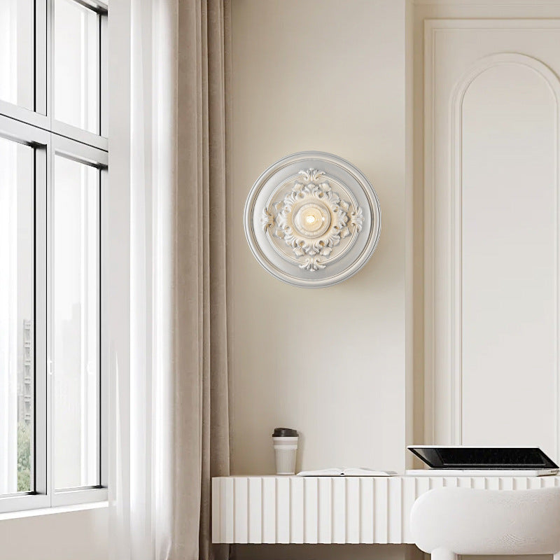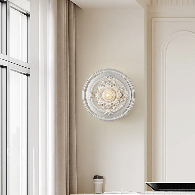 مصباح حائط فرنسي تقليدي دائري منحوت من الراتنج مزود بمصباح واحد لغرفة المعيشة