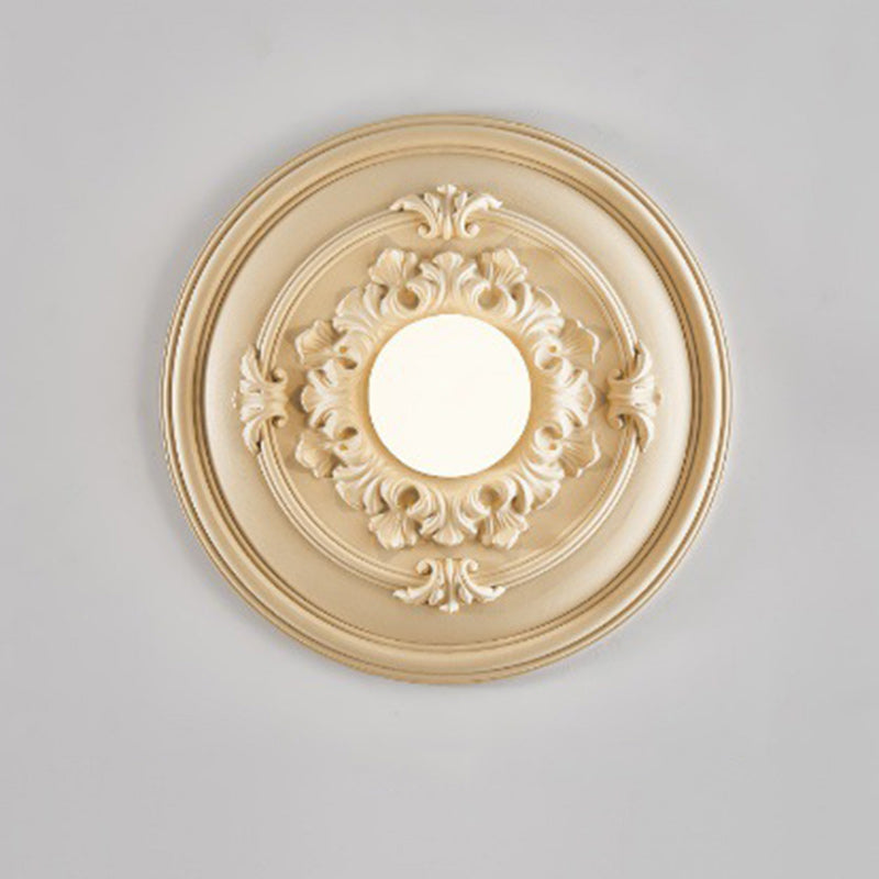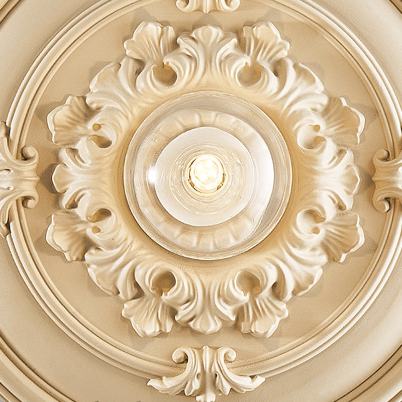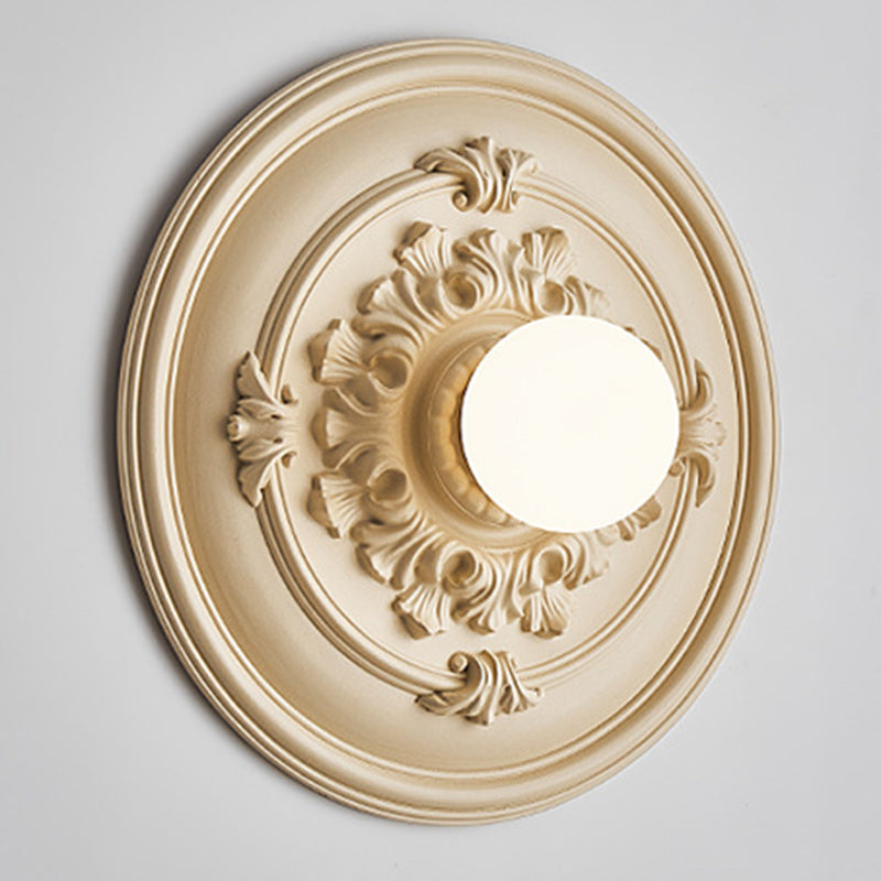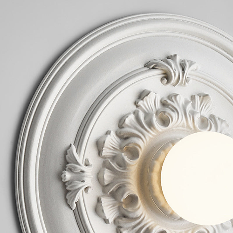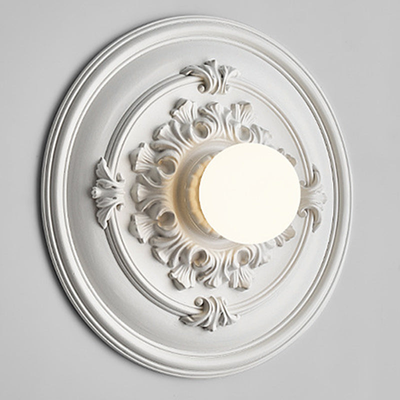 مصباح حائط فرنسي تقليدي دائري منحوت من الراتنج مزود بمصباح واحد لغرفة المعيشة