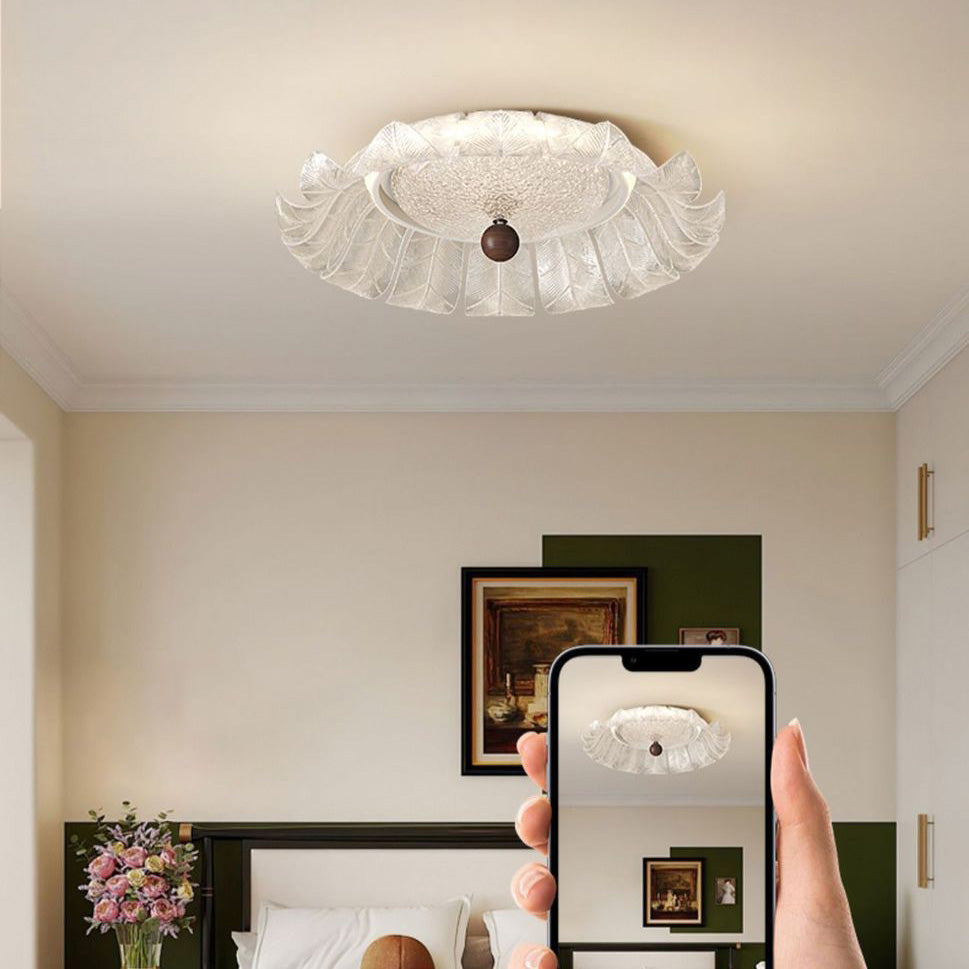 مصباح سقف LED فرنسي تقليدي دائري من الحديد والزجاج والأكريليك لغرفة النوم
