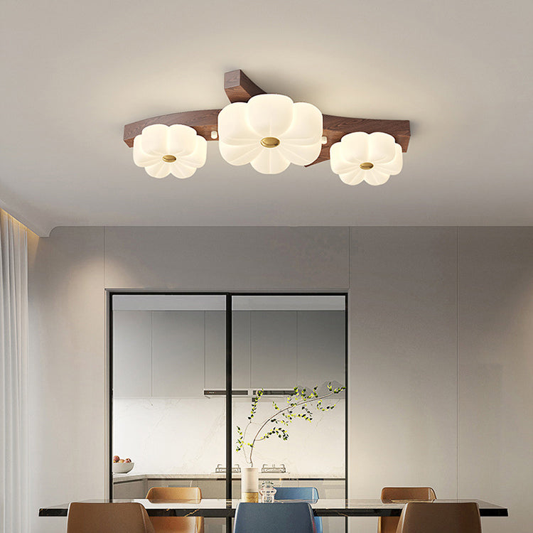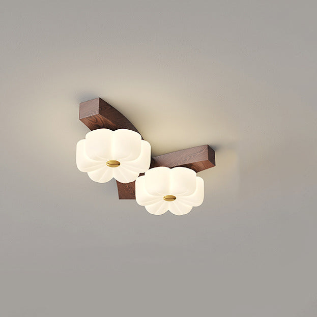 مصباح سقف LED على شكل زهرة من الخشب الصلب الفرنسي التقليدي لغرفة المعيشة