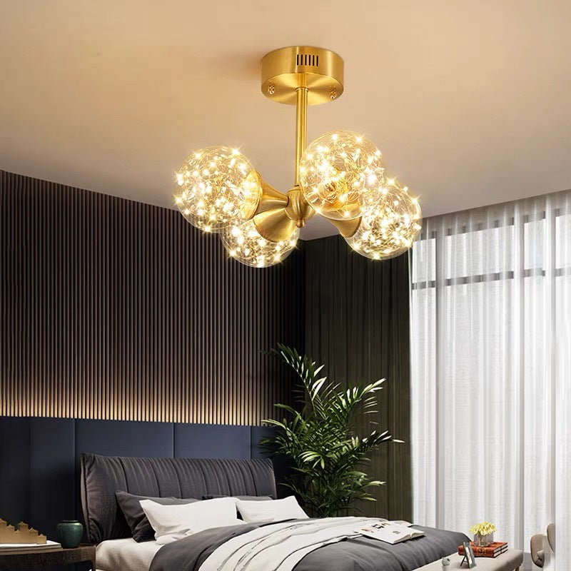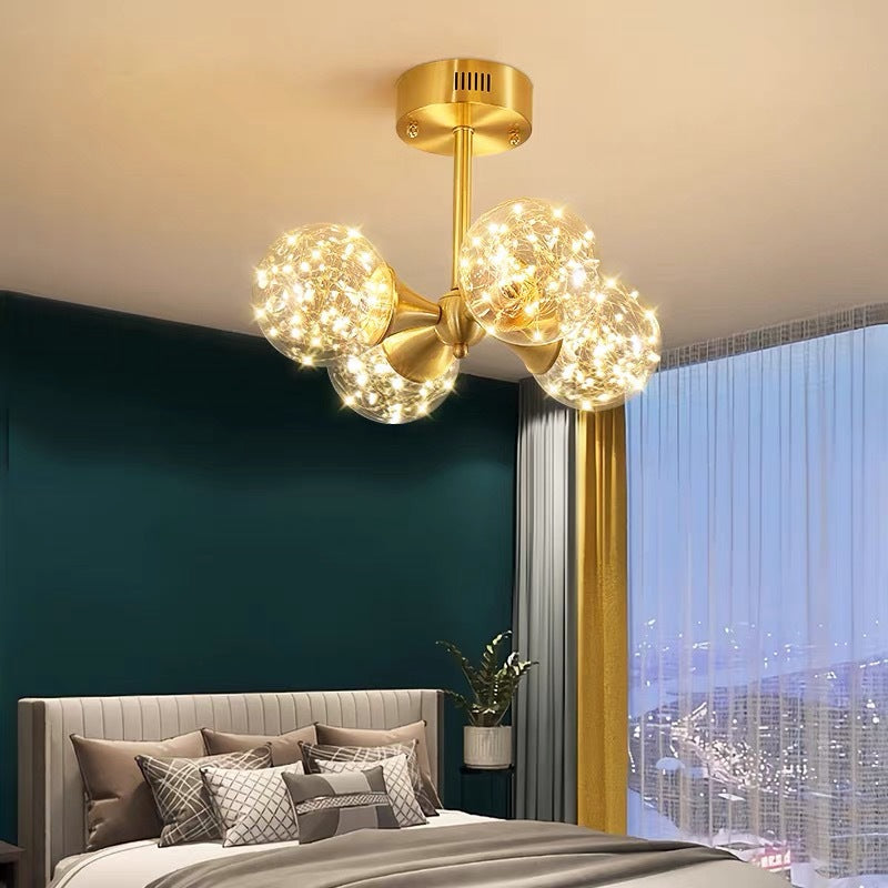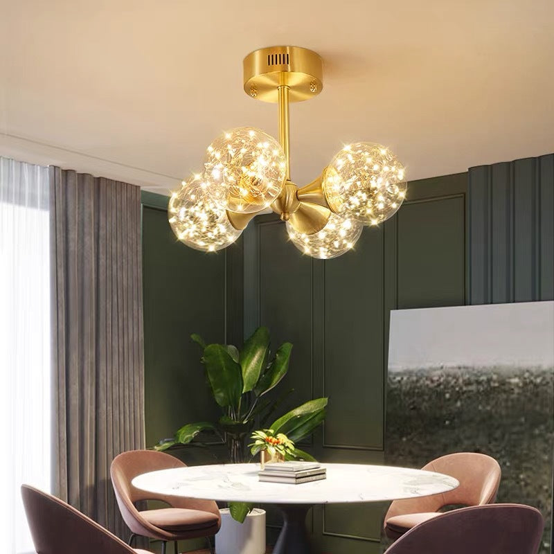 ثريا LED زجاجية كروية فرنسية تقليدية لغرفة المعيشة