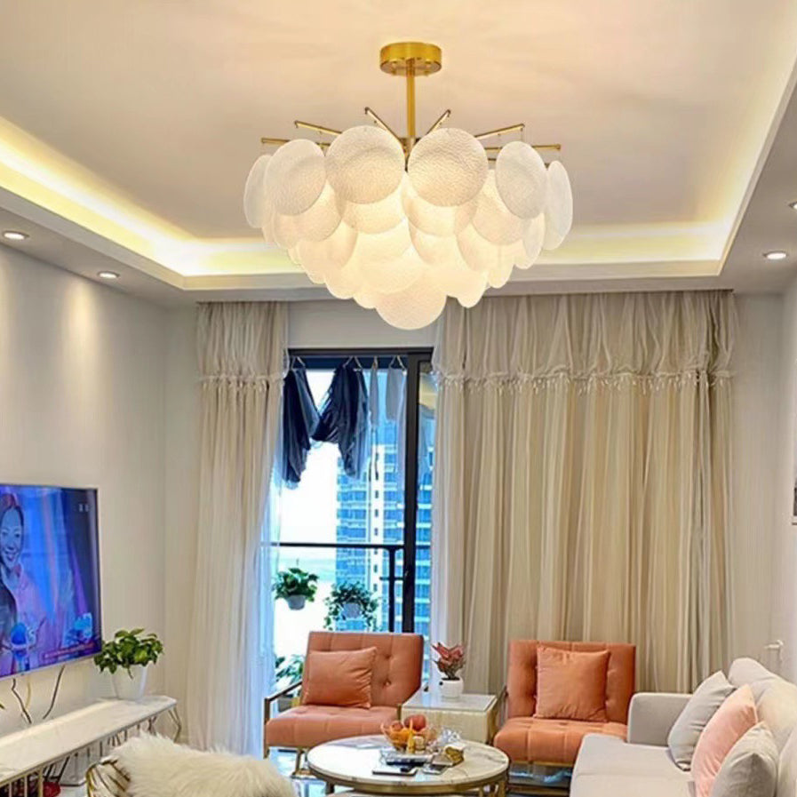 ثريا فرنسية تقليدية دائرية متدرجة من الزجاج السحابي من الحديد، 6/8/9 مصابيح لغرفة المعيشة