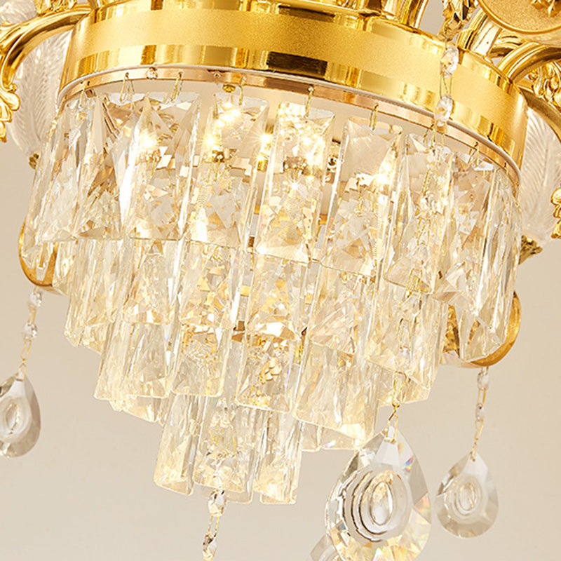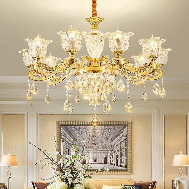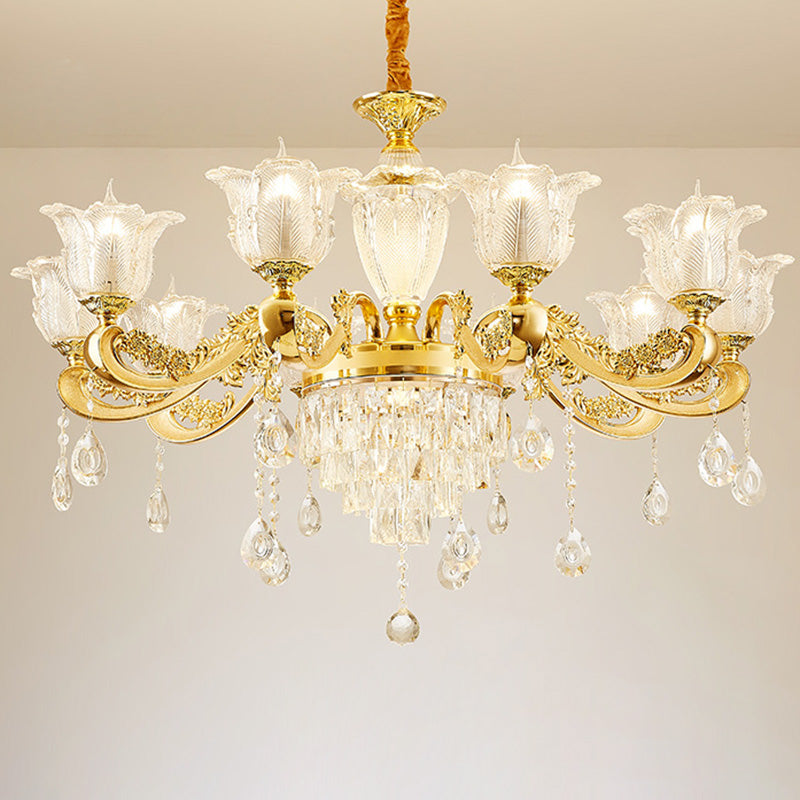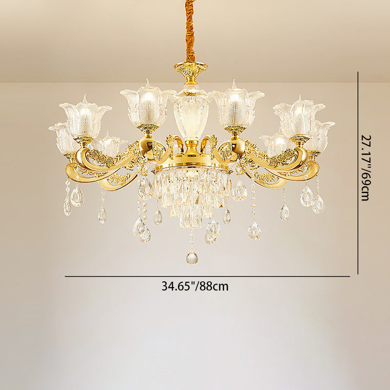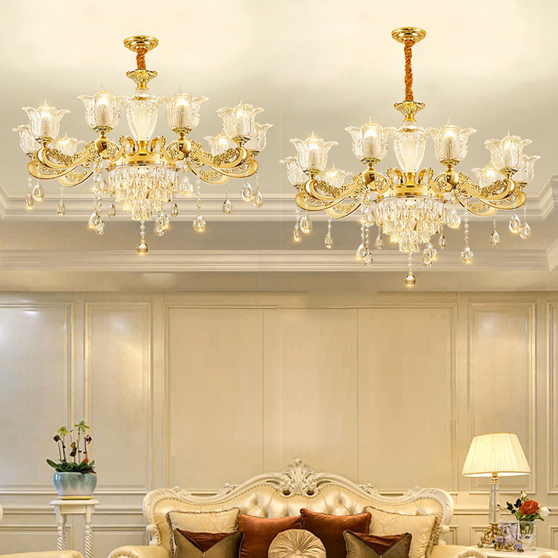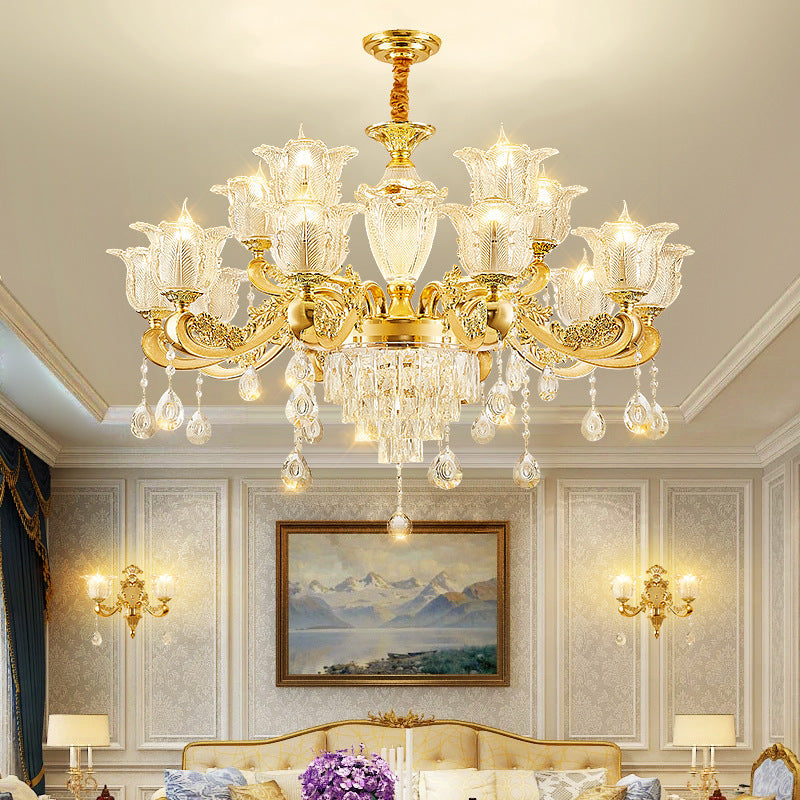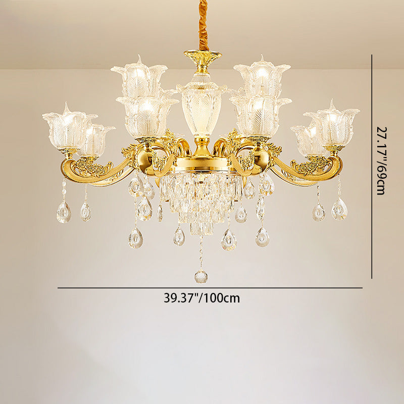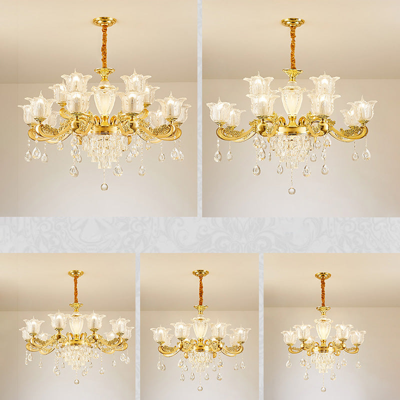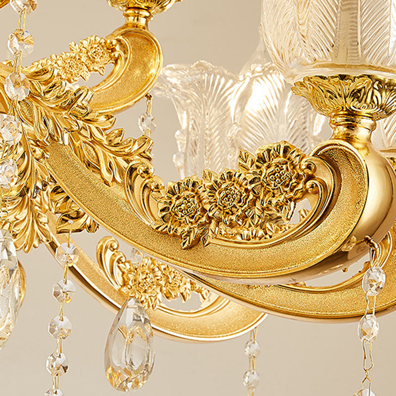 ثريا دائرية من سبائك الزنك والزجاج الكريستالي على شكل غصن فرنسي تقليدي، 6/8/10/12/15 ضوءًا لغرفة المعيشة