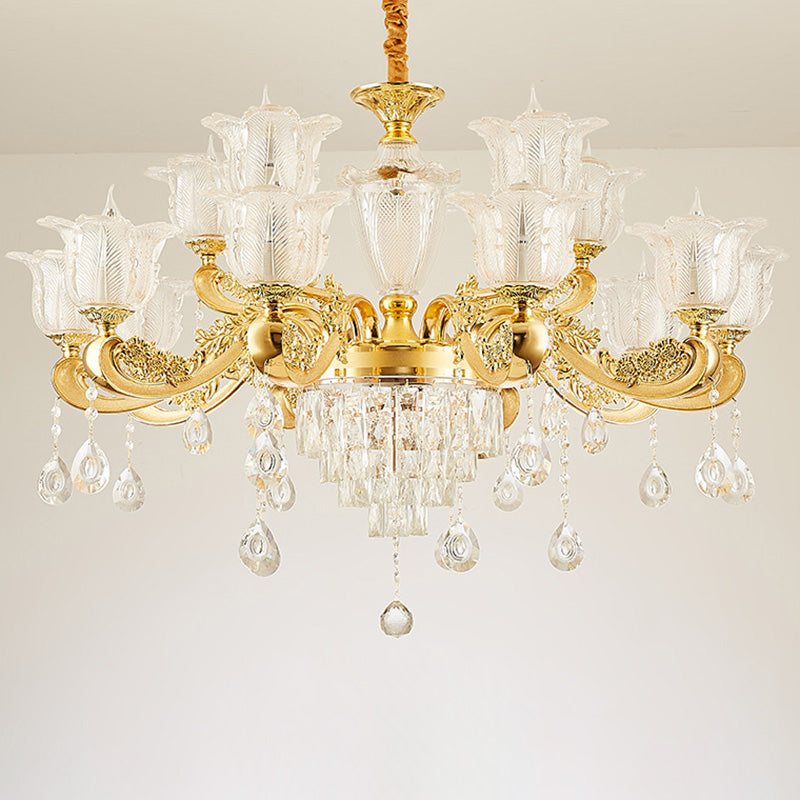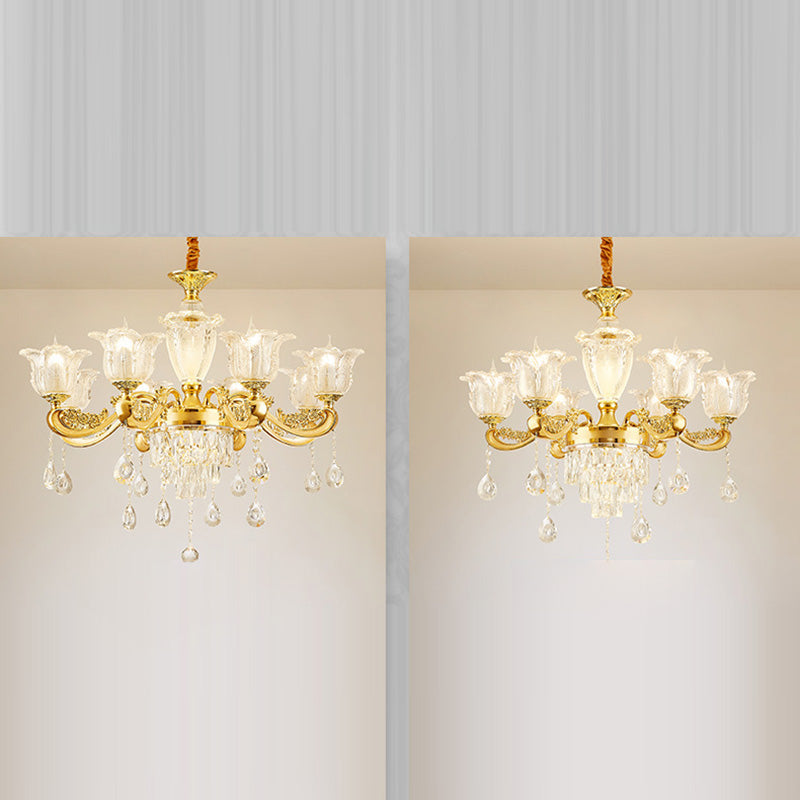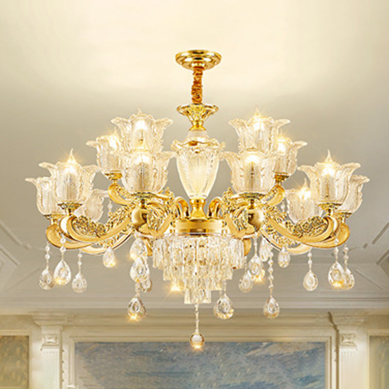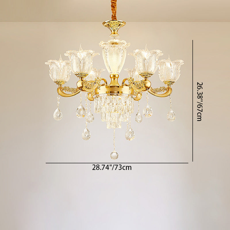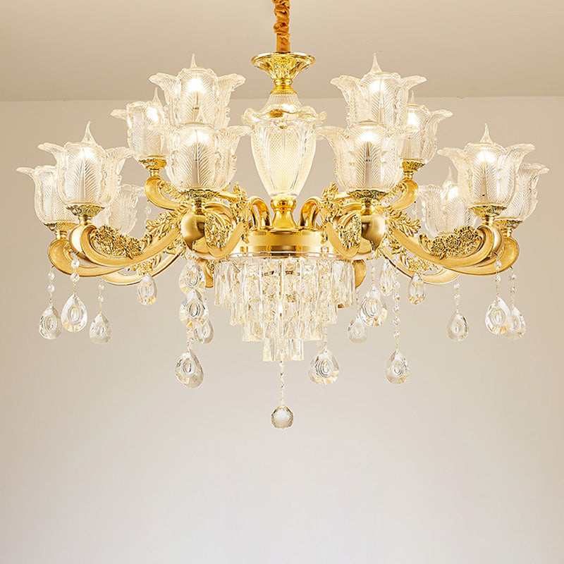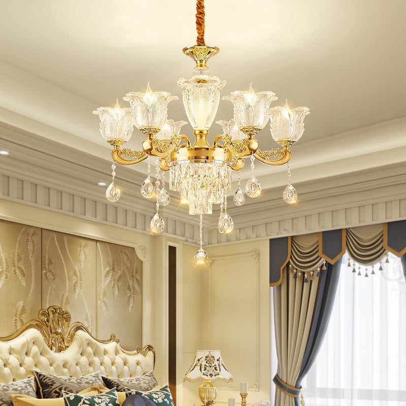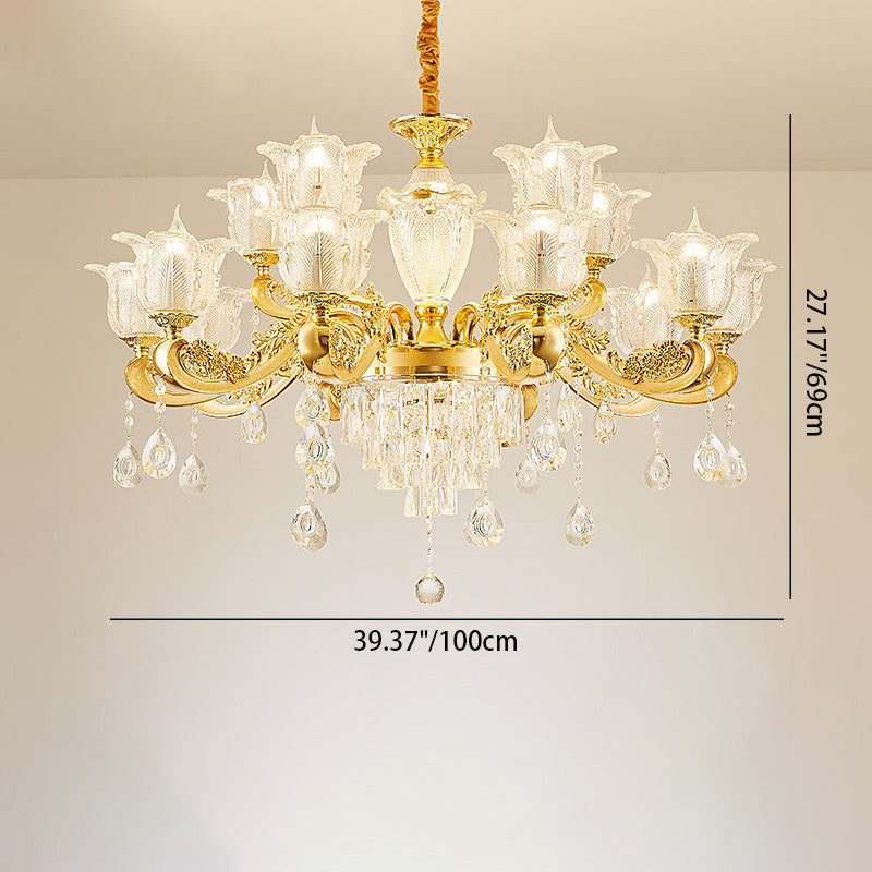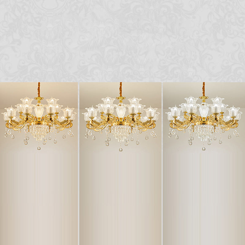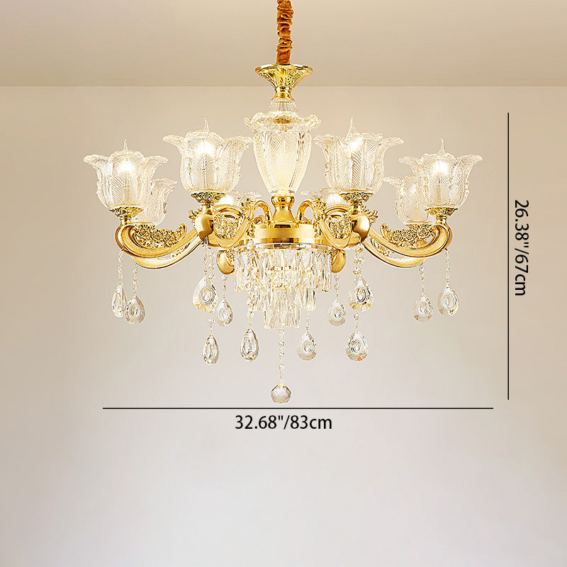 ثريا دائرية من سبائك الزنك والزجاج الكريستالي على شكل غصن فرنسي تقليدي، 6/8/10/12/15 ضوءًا لغرفة المعيشة