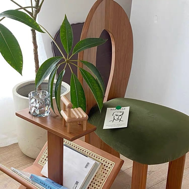 Traditional French Velvet Upholstered Wood Mermaid Dining Chair Arc Backrest For Dining Room