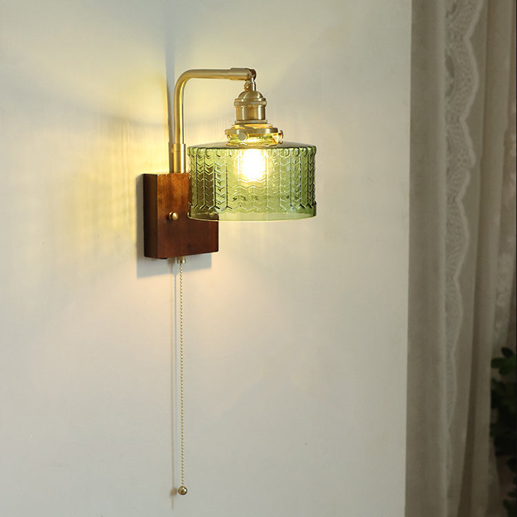 يتميز هذا الشمعدان الجداري العتيق بتصميم أسطواني أنيق وقضيب مستقيم بدرجات لونية شفافة وخضراء. مزود بمفتاح سلسلة عملي، يضفي لمسةً من السحر الياباني التقليدي على غرف النوم والمعيشة.