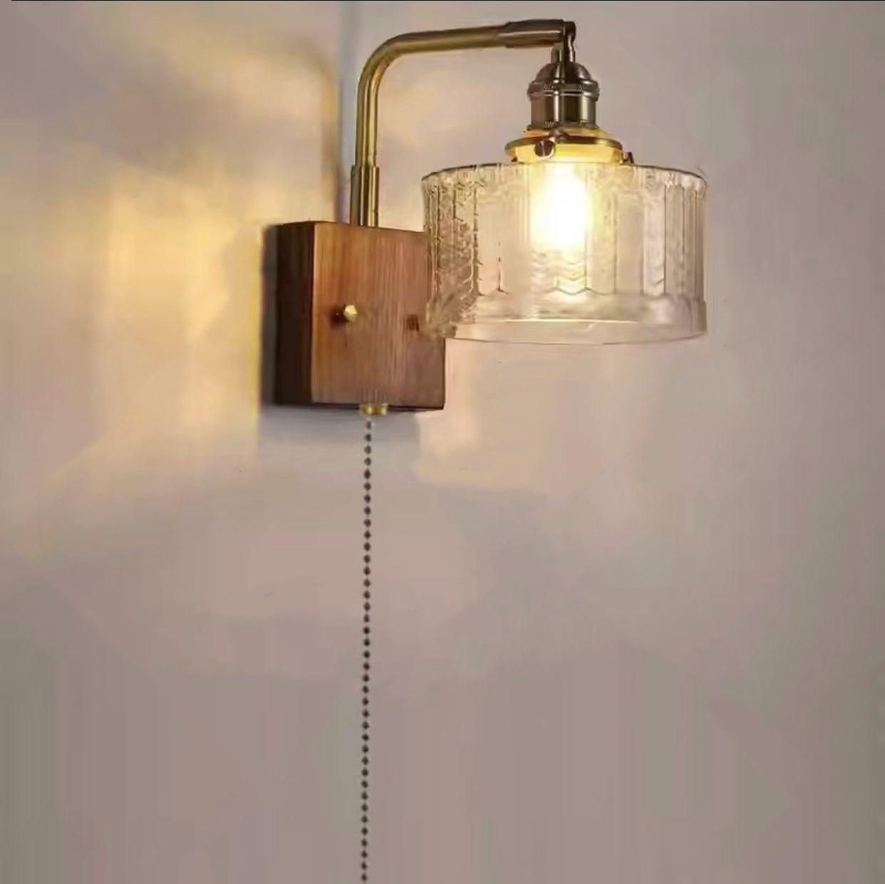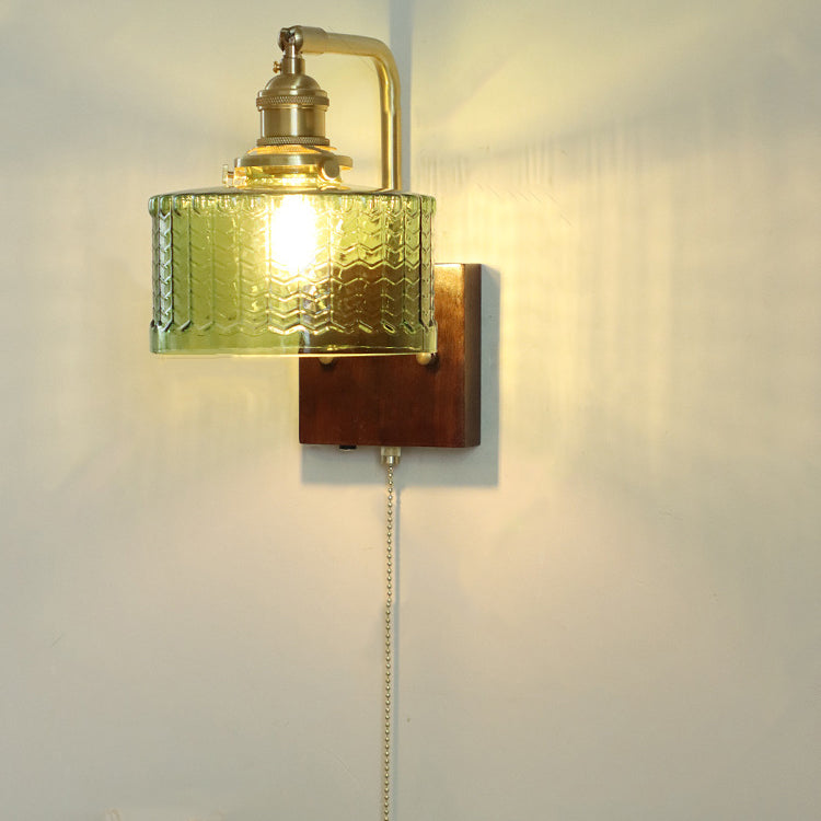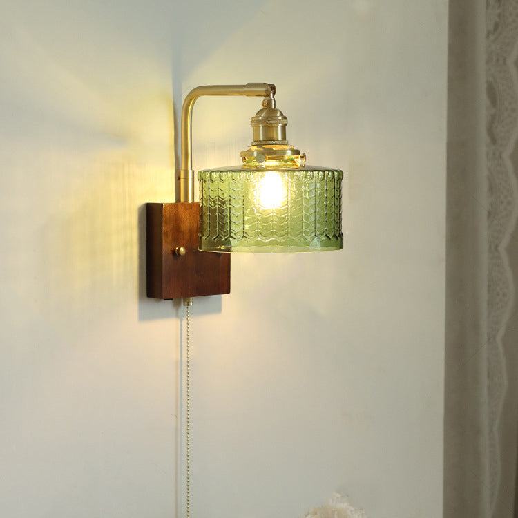 مصباح حائطي ياباني تقليدي مصنوع من النحاس والخشب والزجاج، مزود بأسطوانة واحدة، مناسب لغرفة النوم وغرفة المعيشة