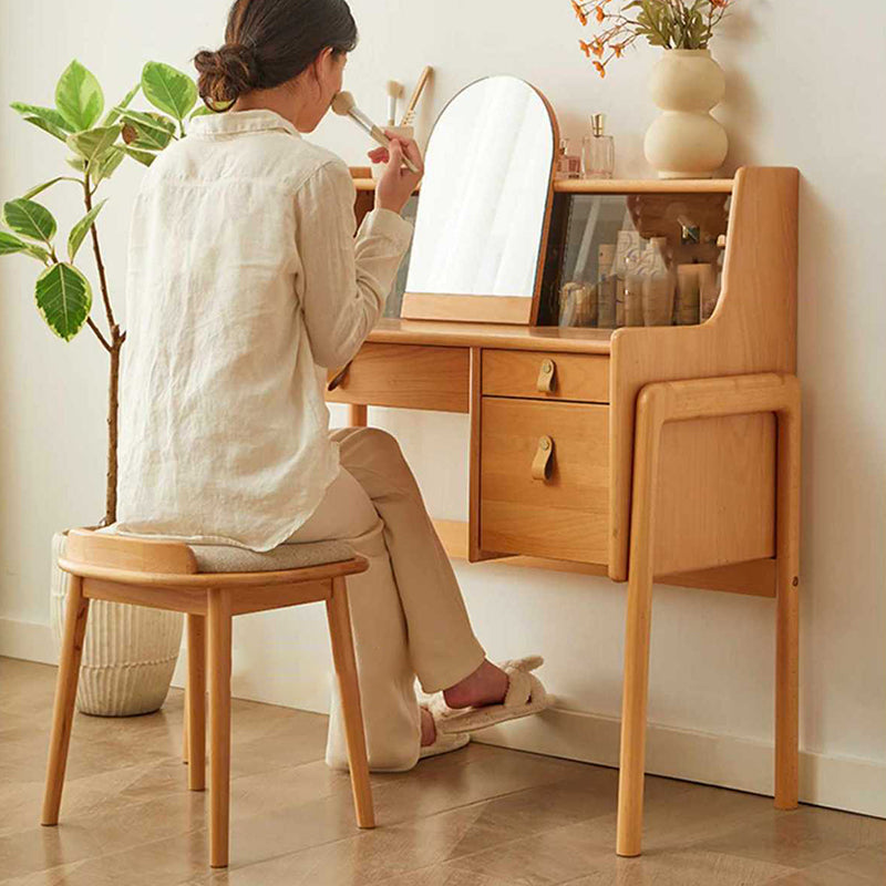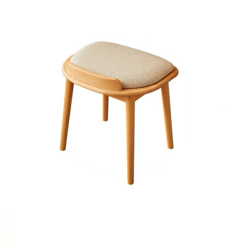 Traditional Japanese Half Arc Square Fabric Wood Vanity Stool Backless Armless For Bedroom